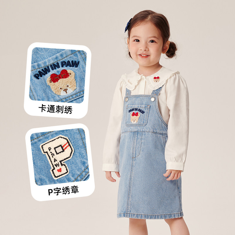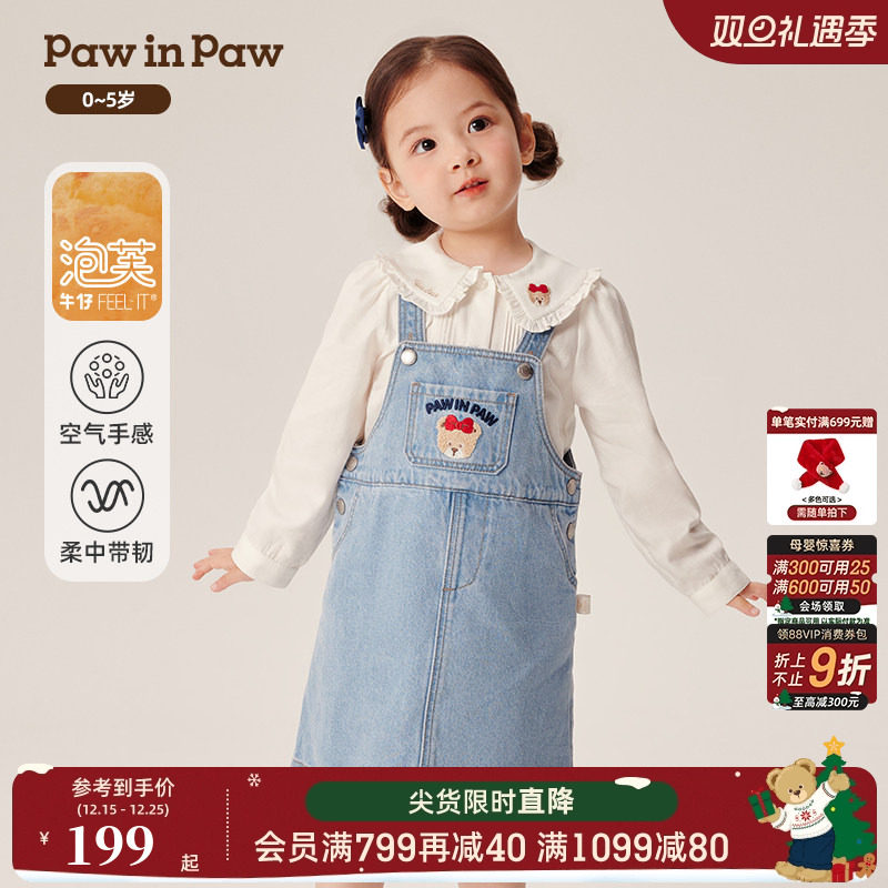 PawinPaw卡通小熊童装春秋女宝宝A字版型经典休闲背带裙