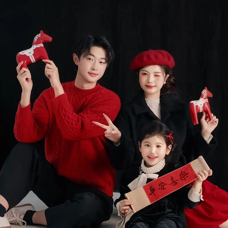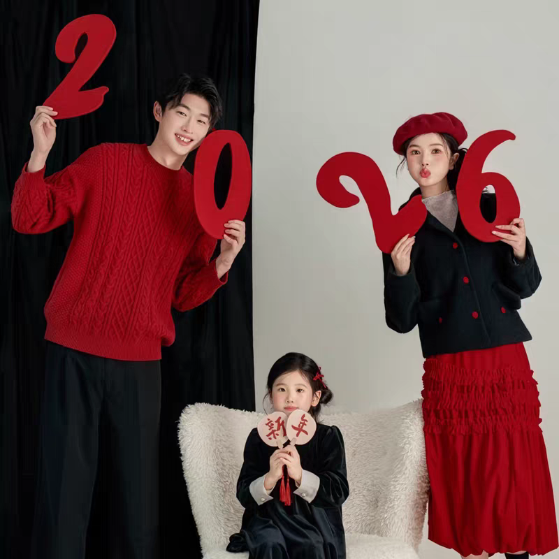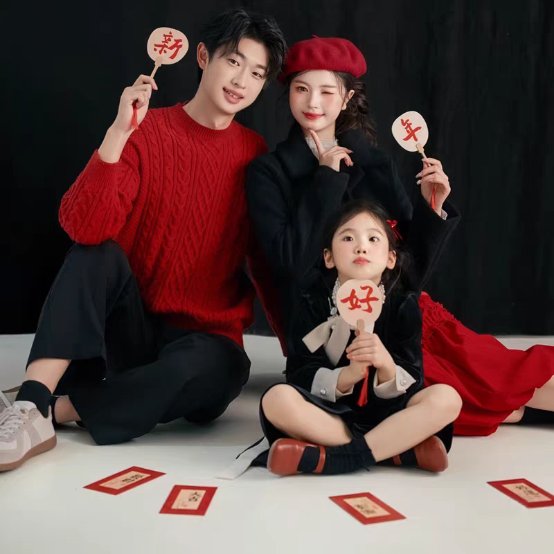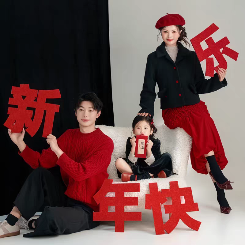 新年全家福儿童写真拍照道具2026毛毡板新年快乐福字手拿字小扇子