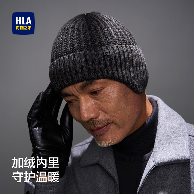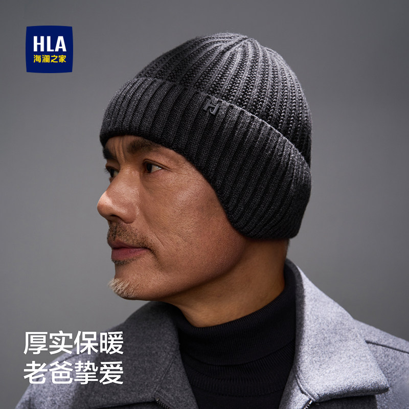 海澜之家针织帽男士新款冬季保暖防寒送爸爸礼物护耳加绒毛线帽子