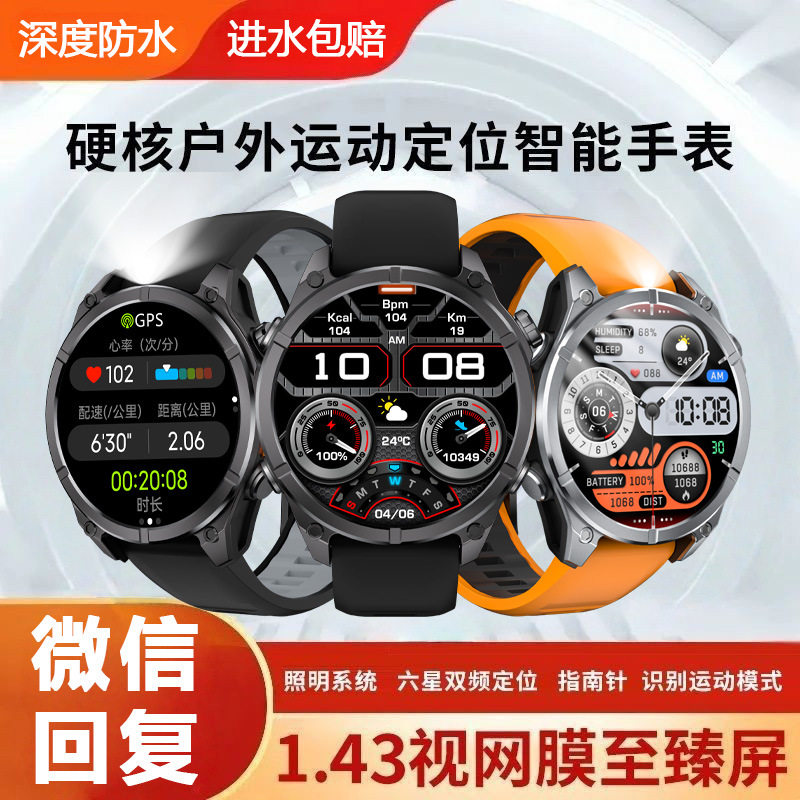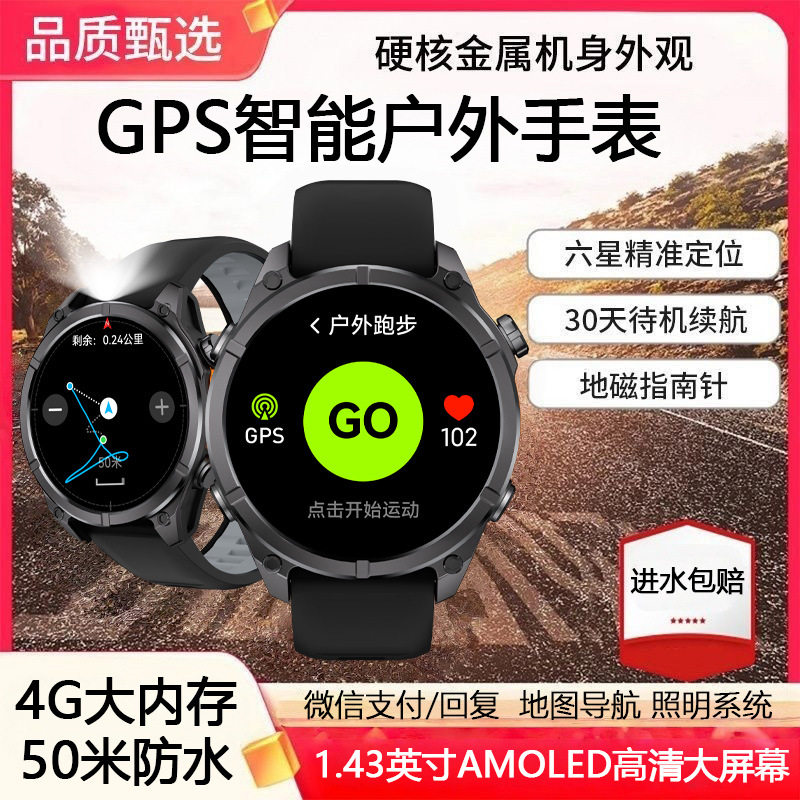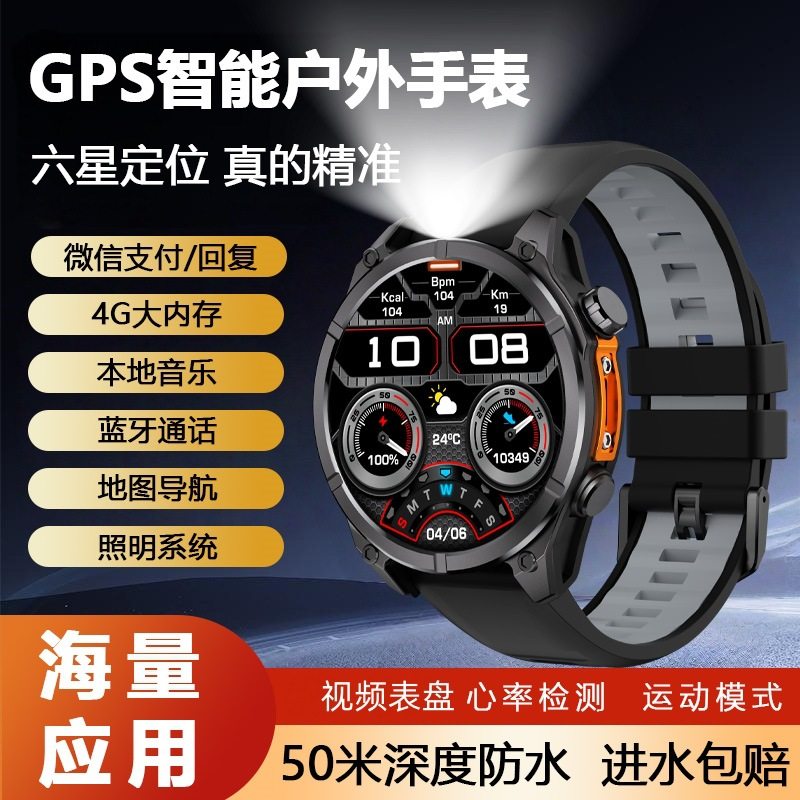 铭胜酷新款智能手表运动定位配速多功能手电筒4G内存支付微信回复HD400