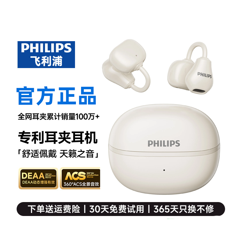 飞利浦TAQ2020蓝牙耳机无线耳夹式运动开放式降噪耳机2026新款