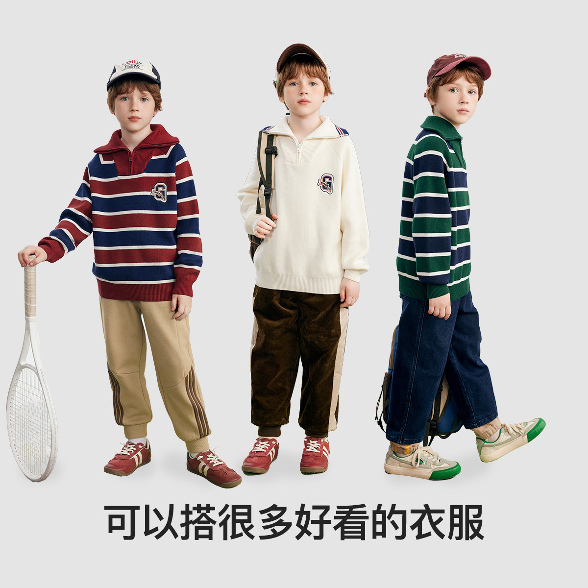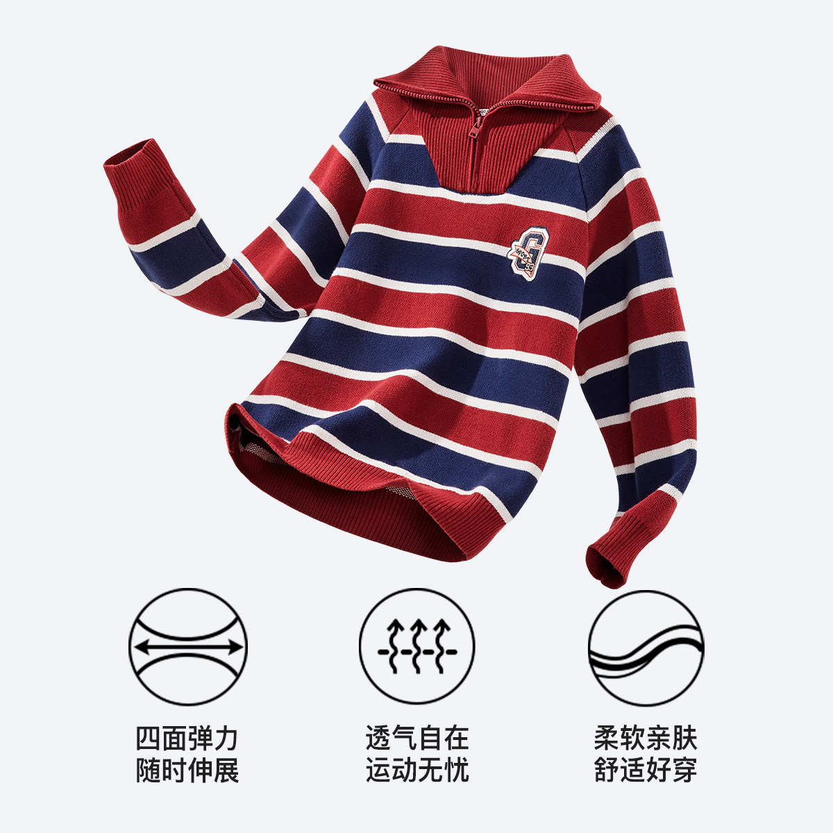 [Z]MQD童装男童毛衣冬复古条纹儿童针织衫翻领加厚保暖毛线衫