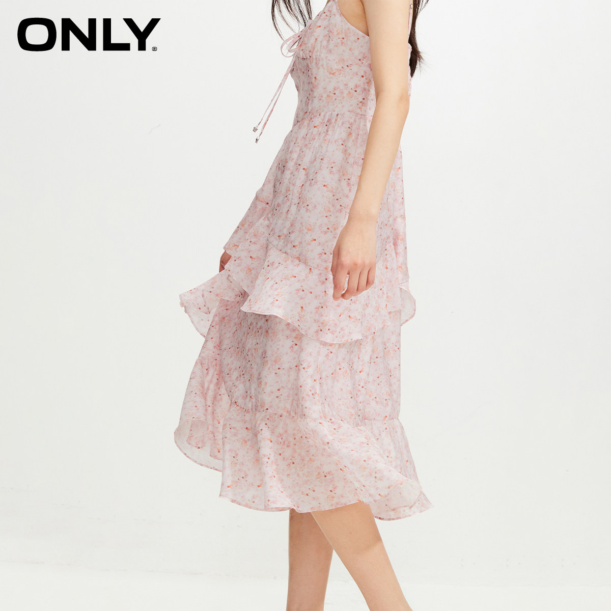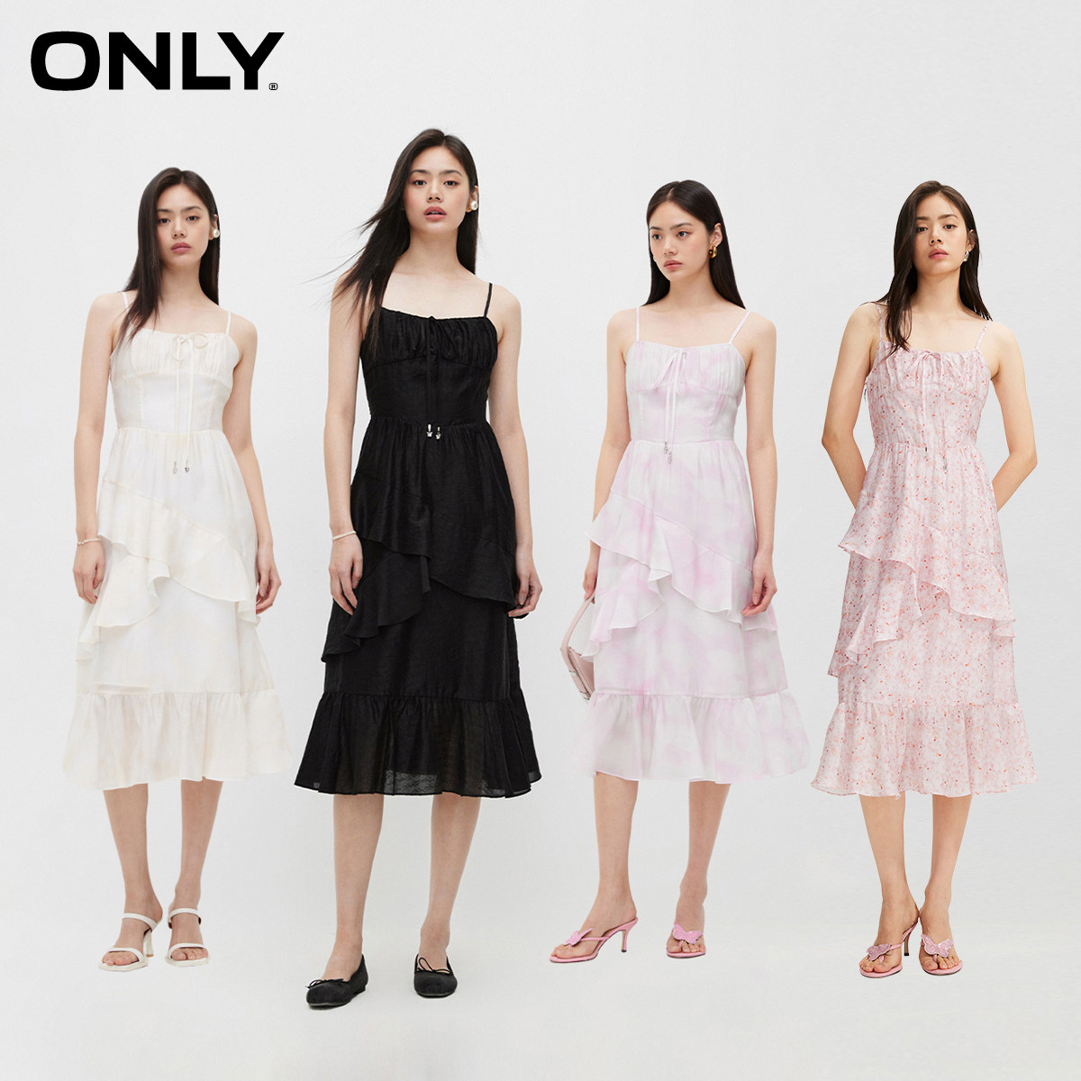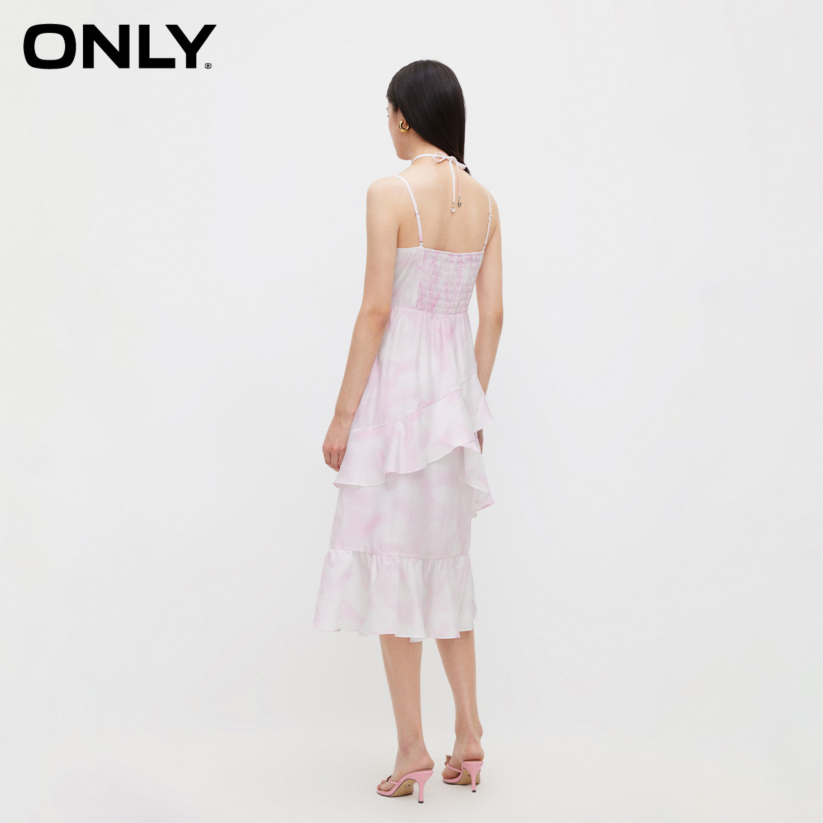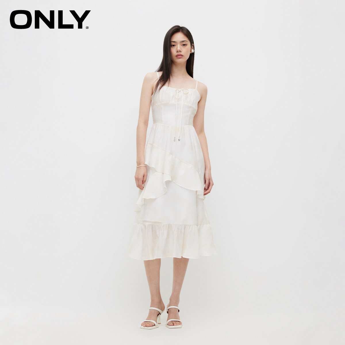 【ONLY奥莱】春夏新款设计感甜美荷叶边拼接吊带连衣裙女