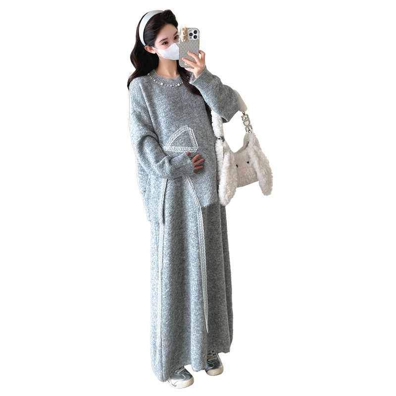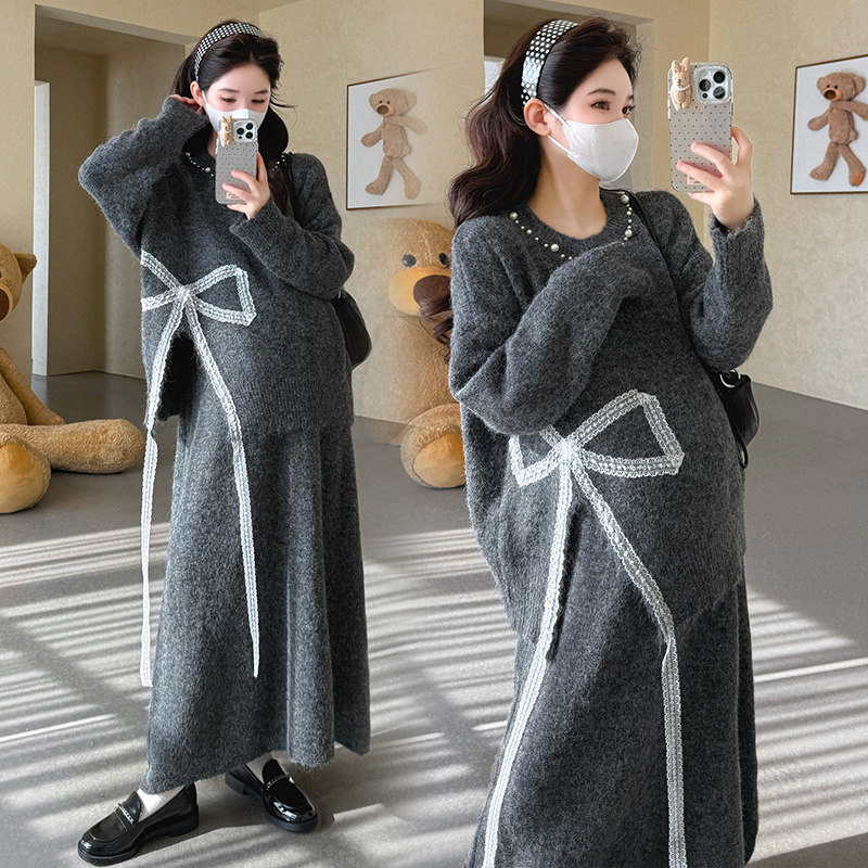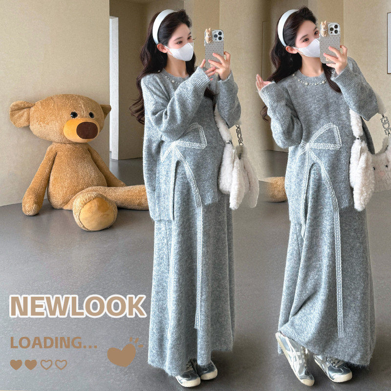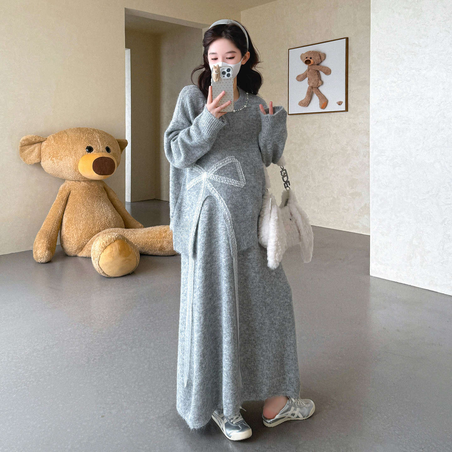婧麒孕妇2025新款套装春秋款休闲洋气时髦针织毛衣半身裙两件套潮