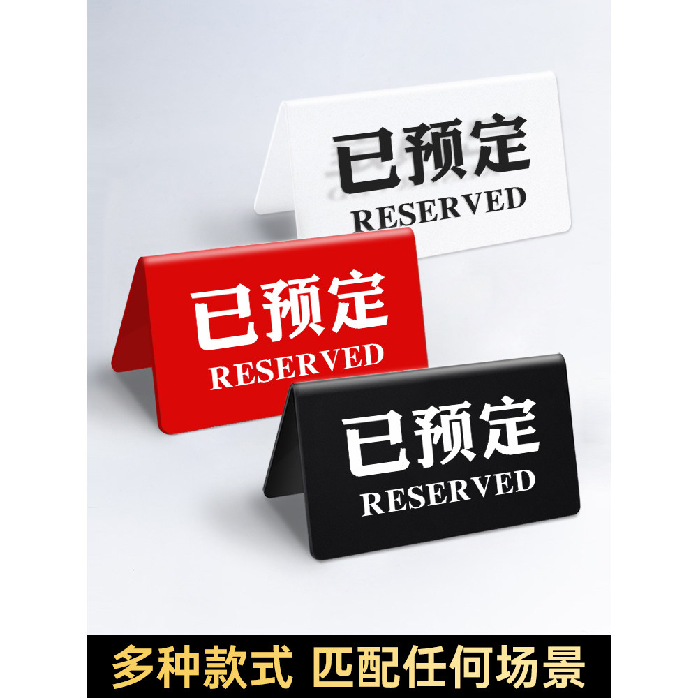 已预订桌牌留座牌桌号牌双面留位牌摆台已预定座位牌台卡立牌已预留酒店餐厅订位留桌牌定制等号台牌亚克力