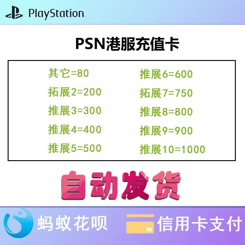 psn充值预付卡 PS4 ps5港服点卡80 200 300 400 500 750 1000 hk
