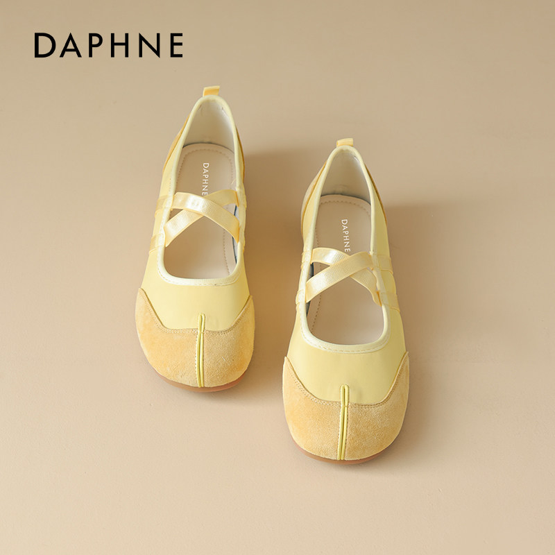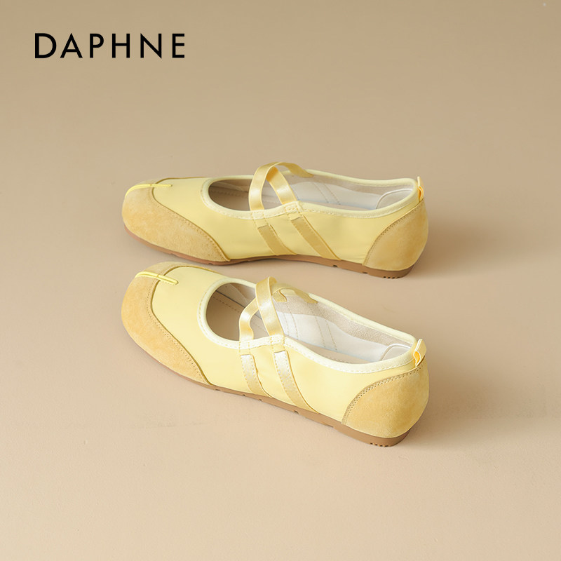 达芙妮运动芭蕾玛丽珍鞋子女2026新款春季黄色软底不累脚平底单鞋