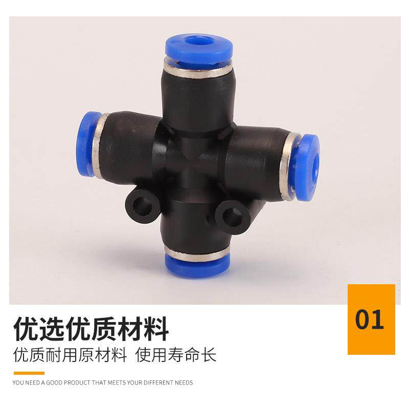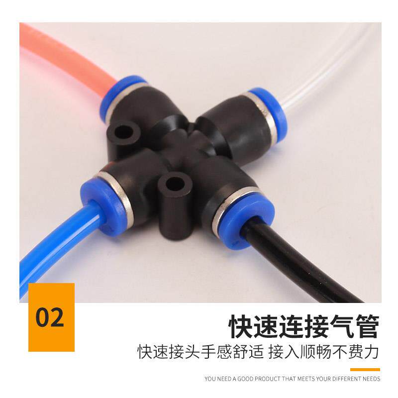 气管十字四通快插接头PZA4/6/8/10/12mmPU管快速直插气动元件配件