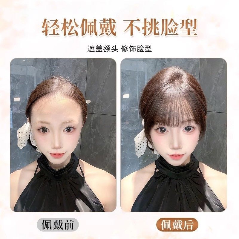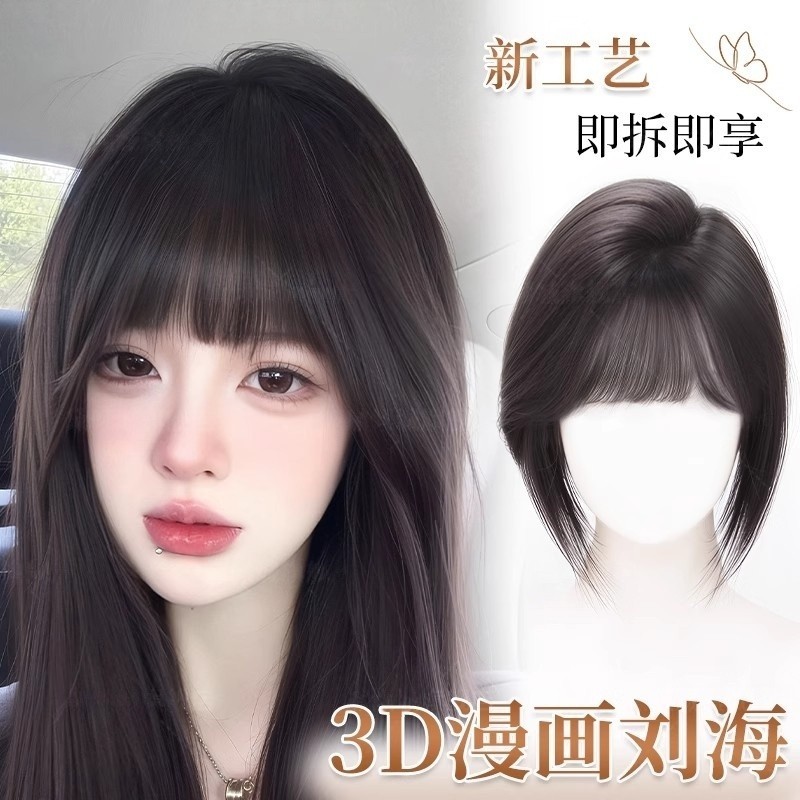 漫画刘海假发女片头顶遮白发增发量蓬松高颅顶增发量齐刘海假刘海