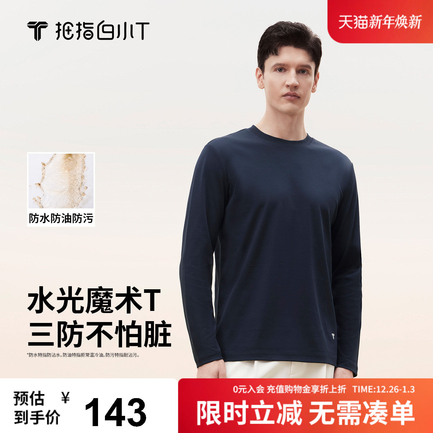 拇指白小T三防纯棉长袖T恤秋季新款纯色百搭时尚圆领男款体恤衫