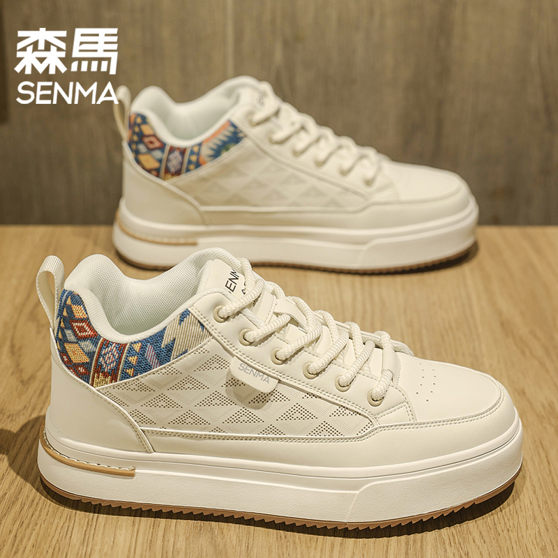 森马小白鞋男款2025新款夏季透气增高运动休闲鞋子男真皮板鞋