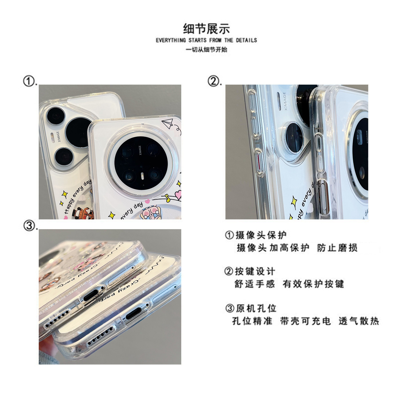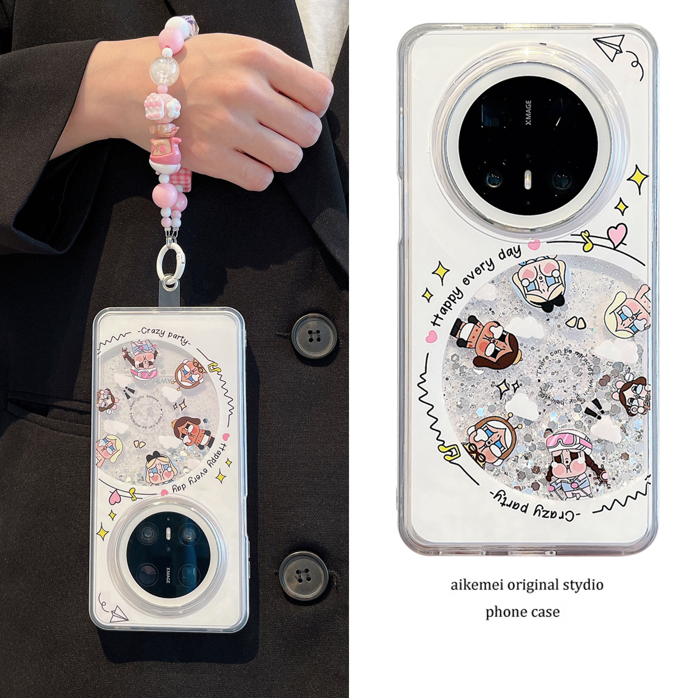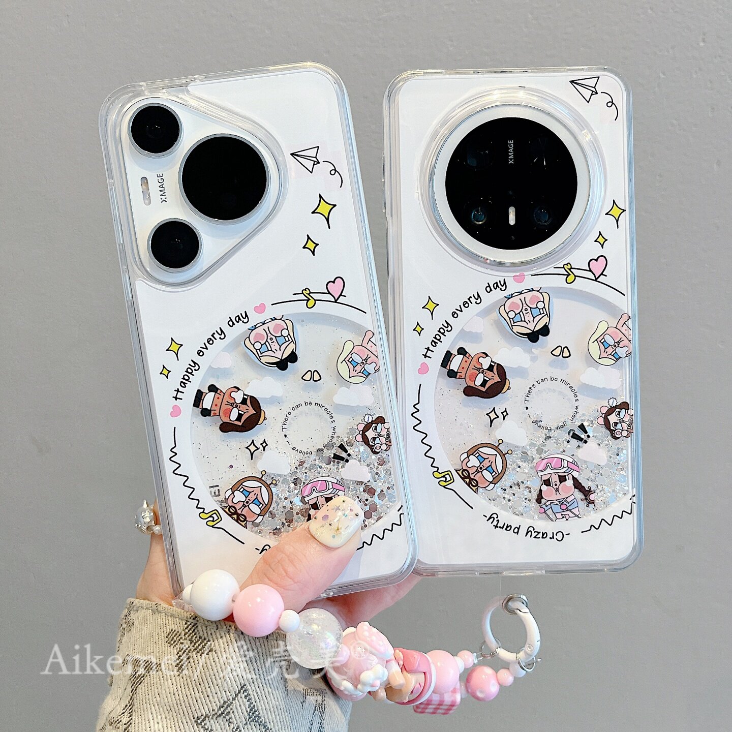 适用华为mate70pro+手机壳可爱卡通女孩唱片mate60pro银色流沙壳mate50/40pro链条挂绳pura70pro全包防摔女款