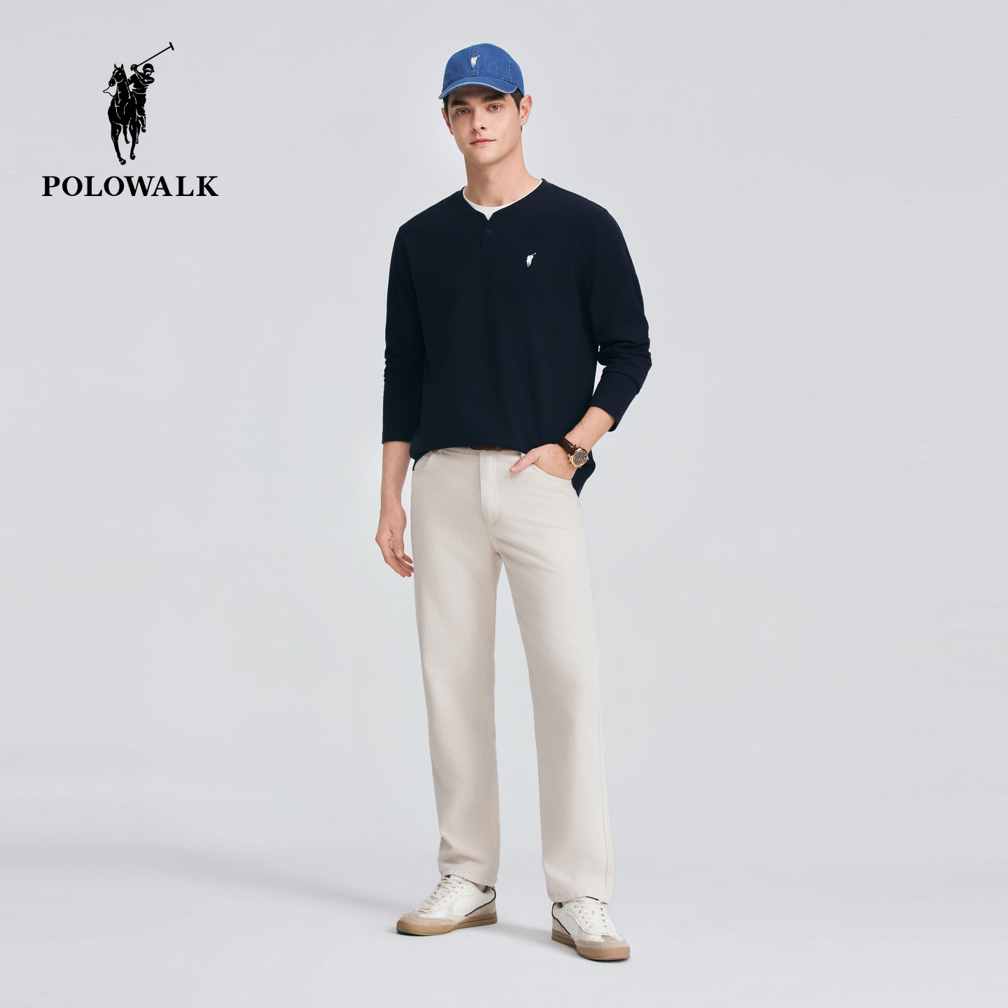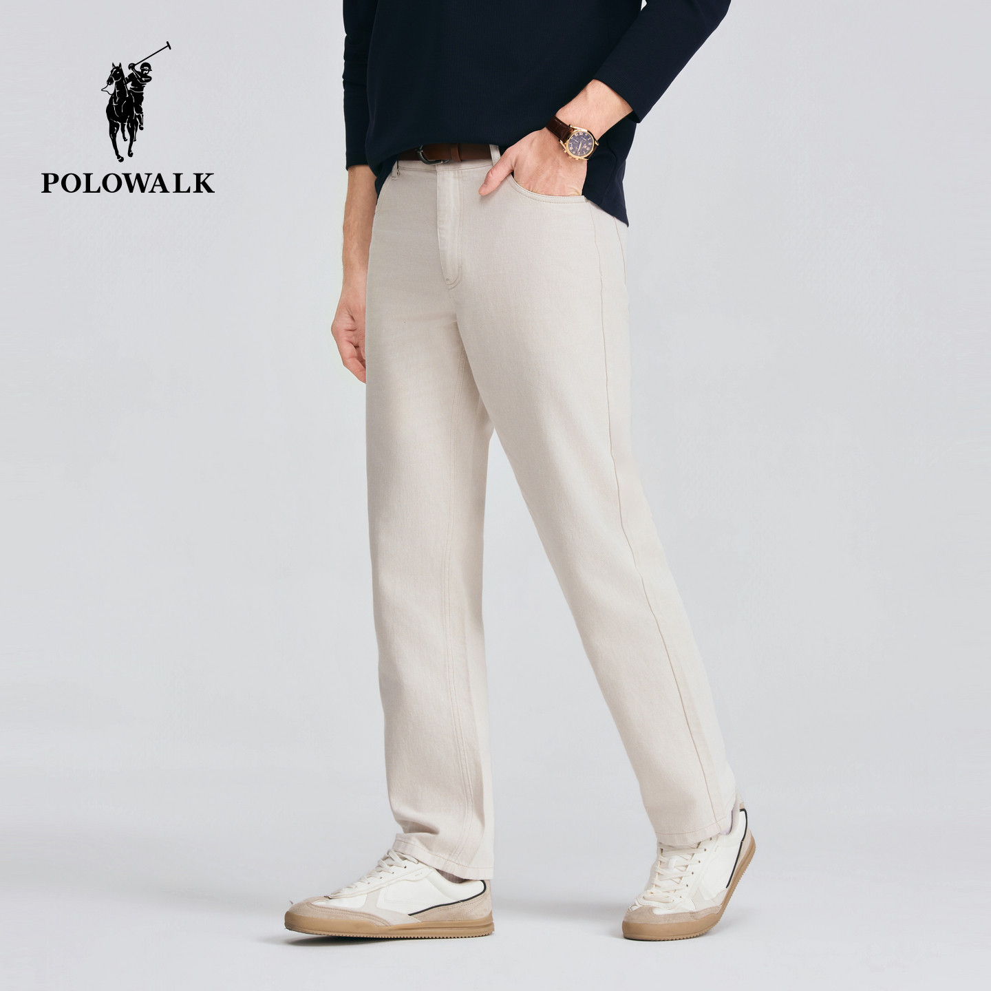 POLOWALK男式休闲裤2026春夏裤新品棉麻混纺经典直筒显瘦休闲长裤