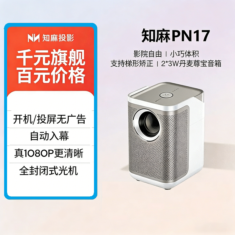知麻PN17便携式家用投影仪超高清投屏卧室客厅白天直投可连手机支持WiFi内置爱奇艺播放资源可当蓝牙音箱