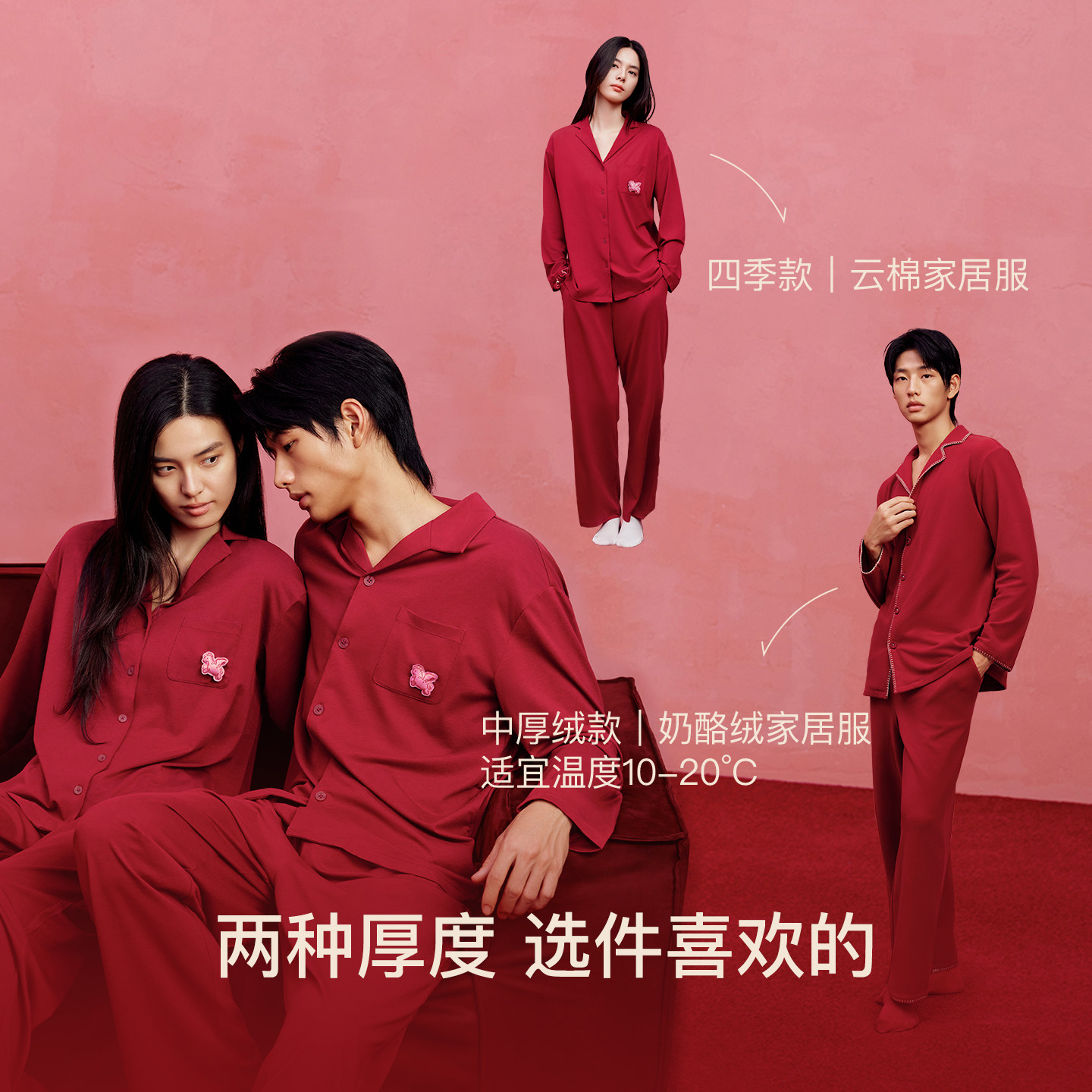ubras奶酪绒家居服女士婚礼红色睡衣男情侣本命年送礼25年新款冬