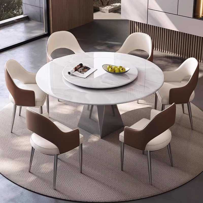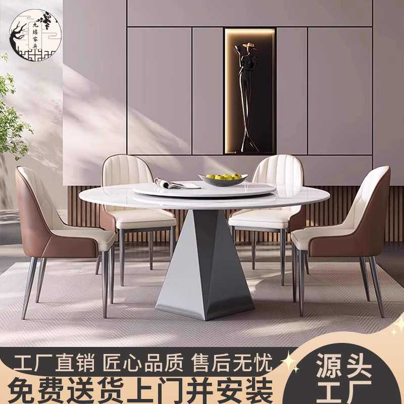 超晶石餐桌奢石现代简约家用天然岩板圆形桌子小户型微晶石圆桌
