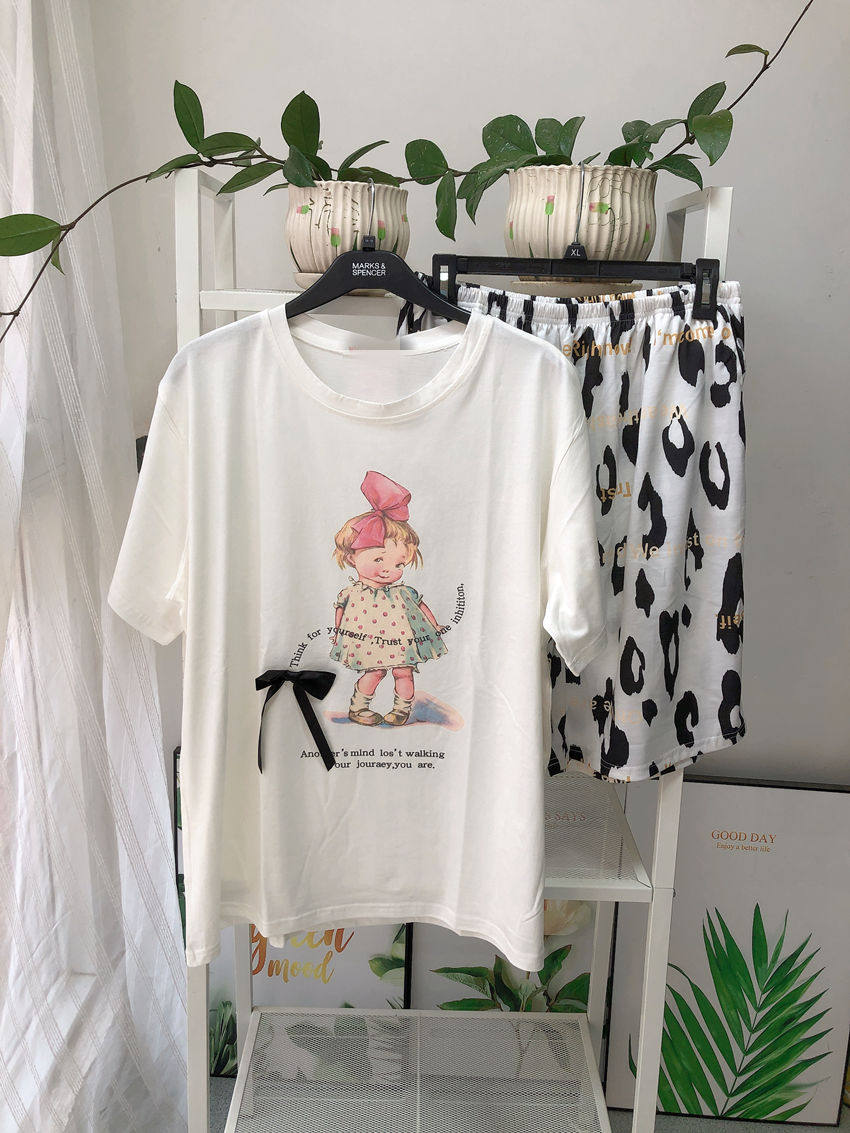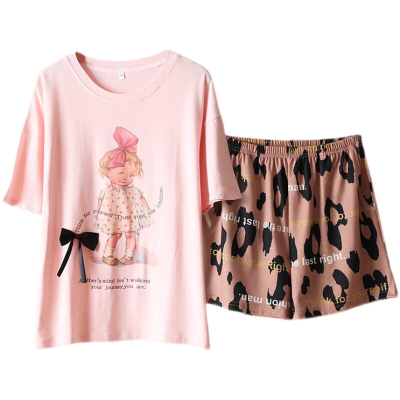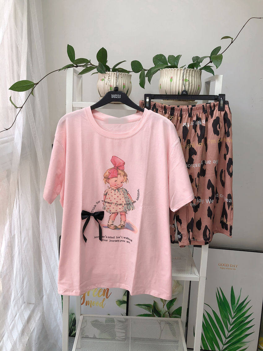 200斤加大码洋娃娃睡衣女夏季针织纯棉短袖短裤卡通家居服两件套