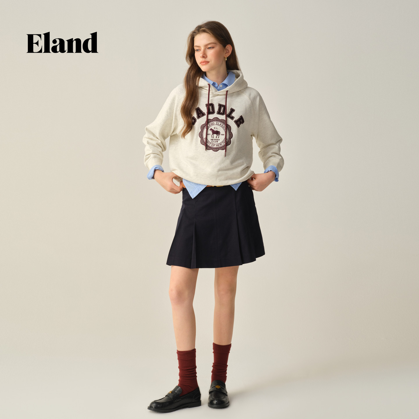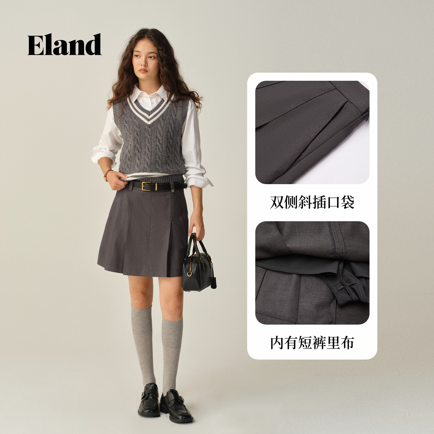 【优可丝】Eland衣恋半身裙女学院风收腰显瘦短裙2025冬季新款
