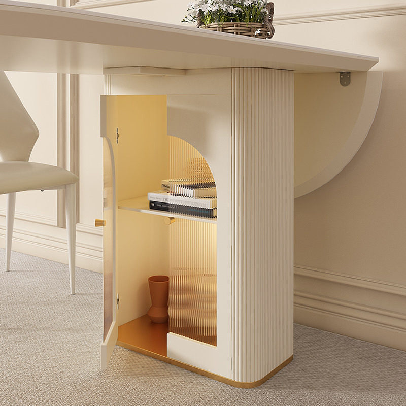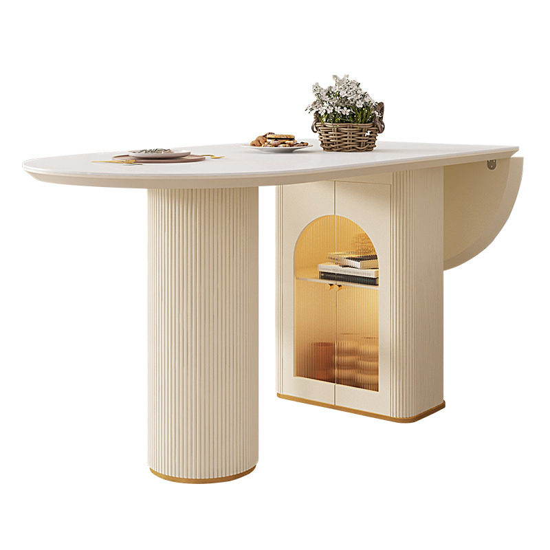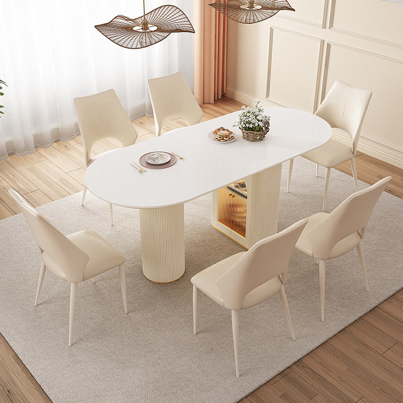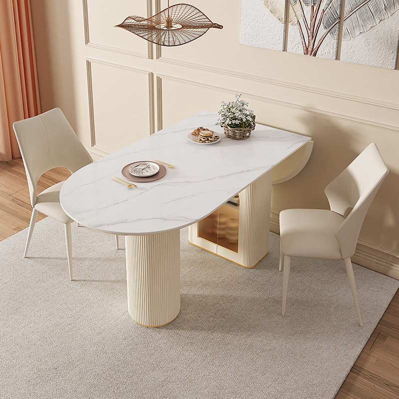 宫殿威仪奶油风岩板餐桌椅组合家用可折叠餐桌小户型椭圆形饭桌子