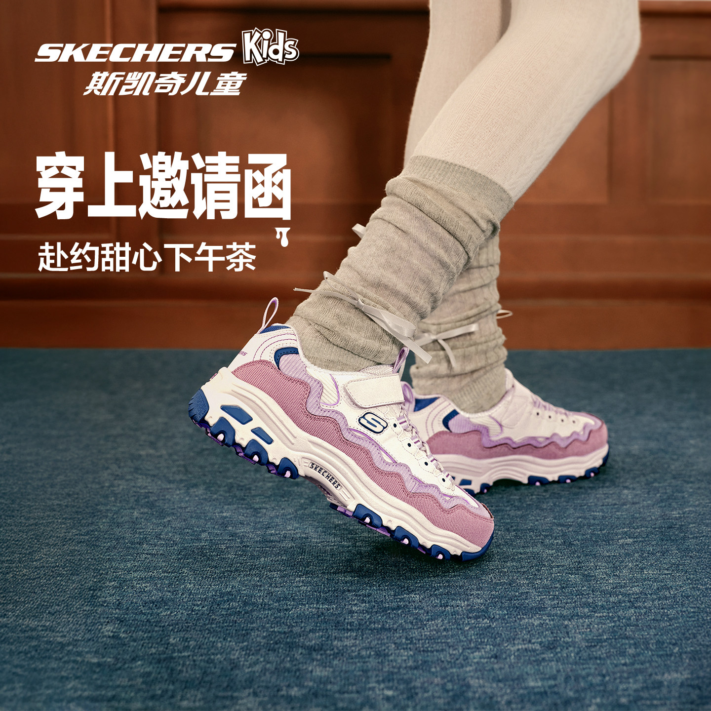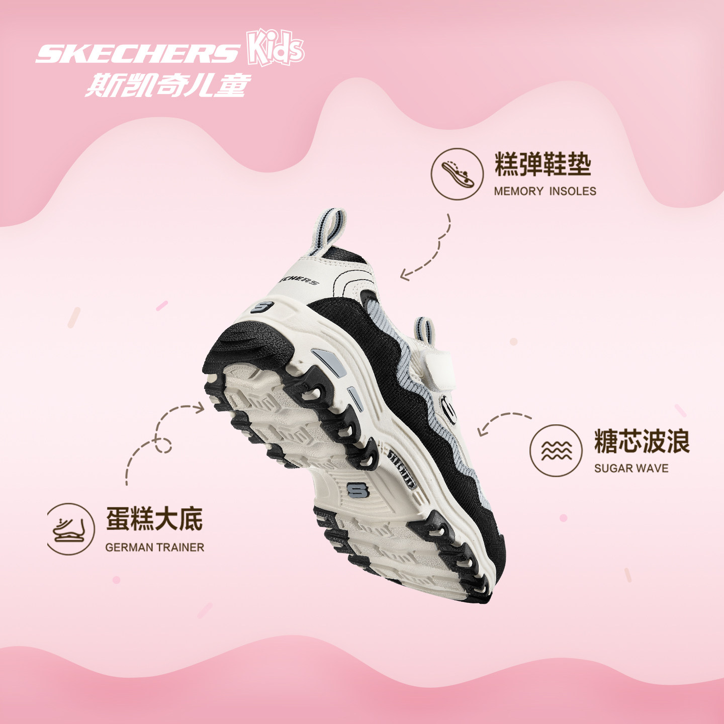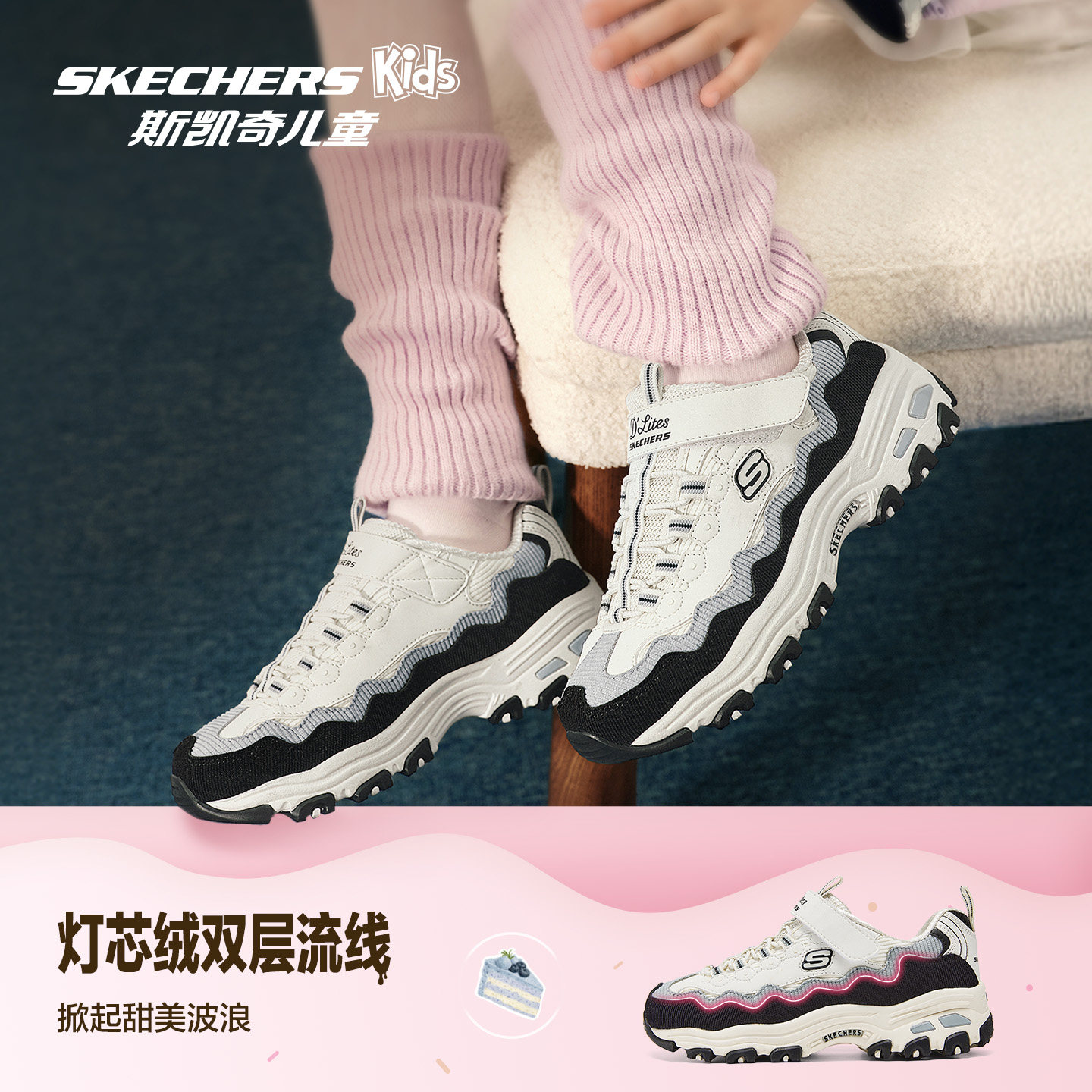 Skechers斯凯奇儿童蛋糕熊春秋大童防滑运动鞋女童复古熊猫老爹鞋