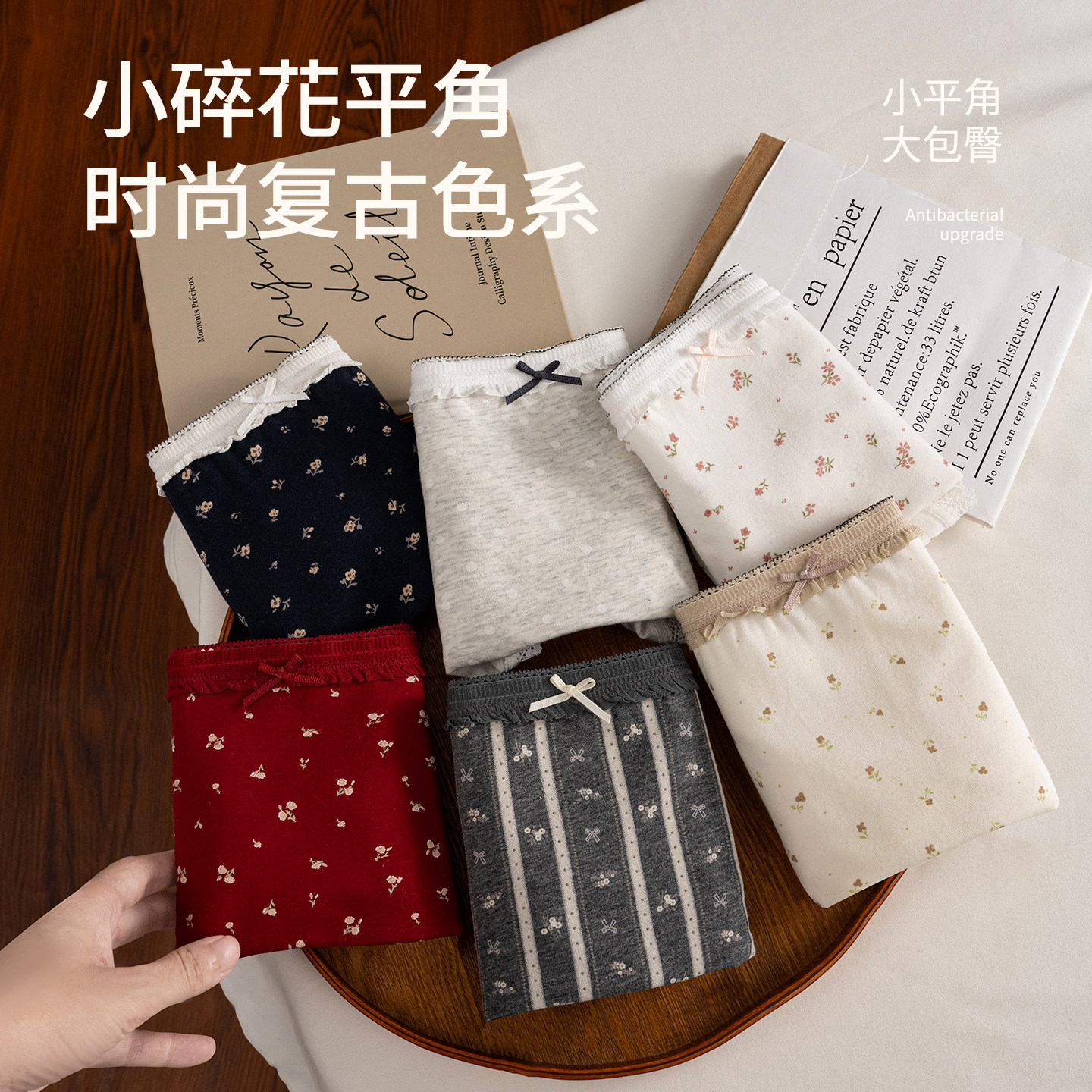 蝶安芬女内裤高腰收腹提臀纯色纯棉简约蝴蝶结舒适透气平角裤大码