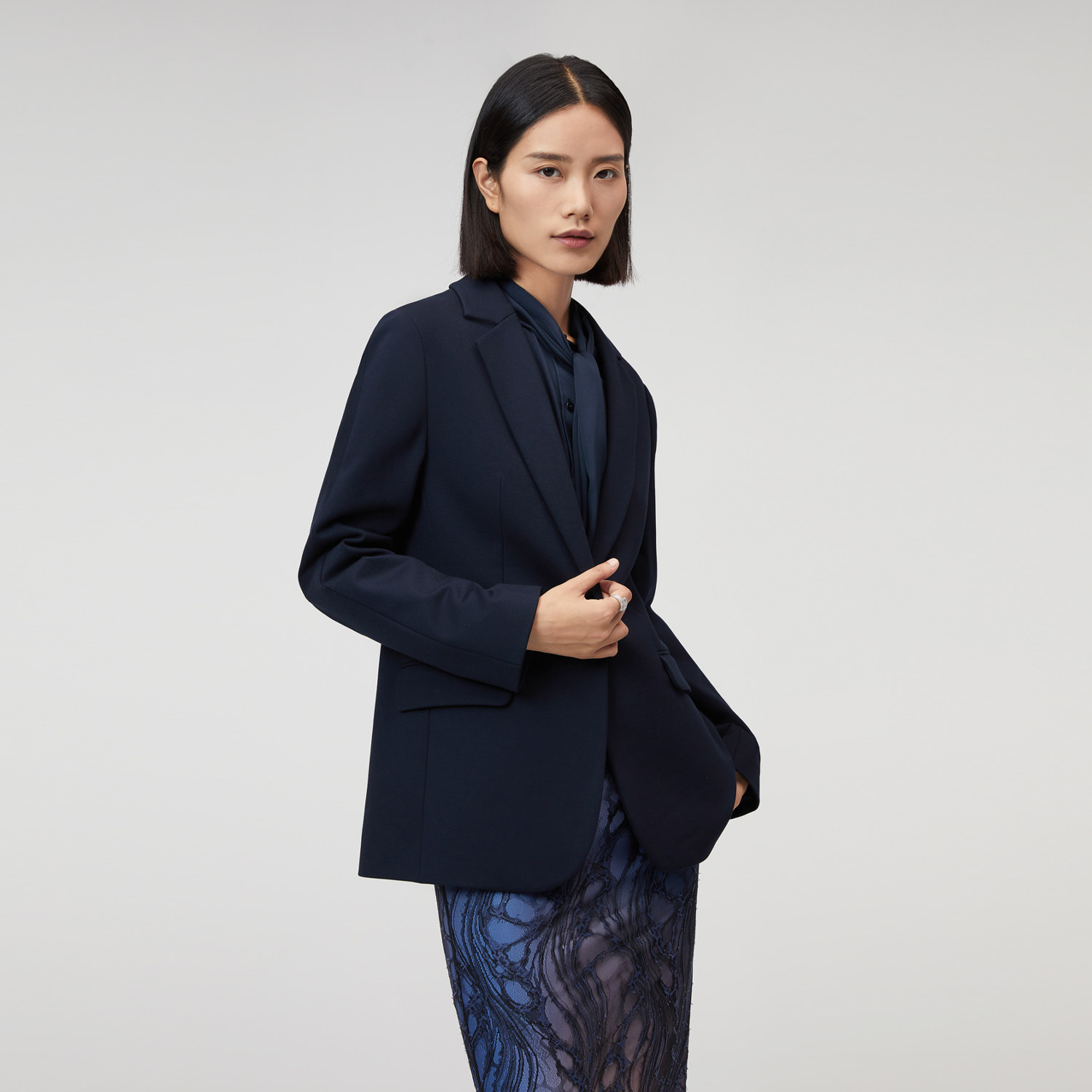 一粒扣设计 平驳领型 休闲通勤
