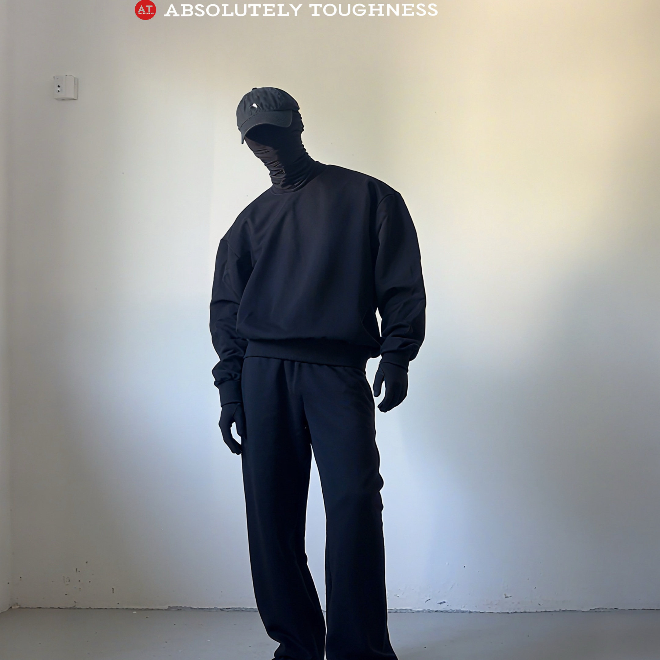 ABSTOUGH小领口boxy短宽圆领卫衣男士百搭休闲宽松打底套头男长袖