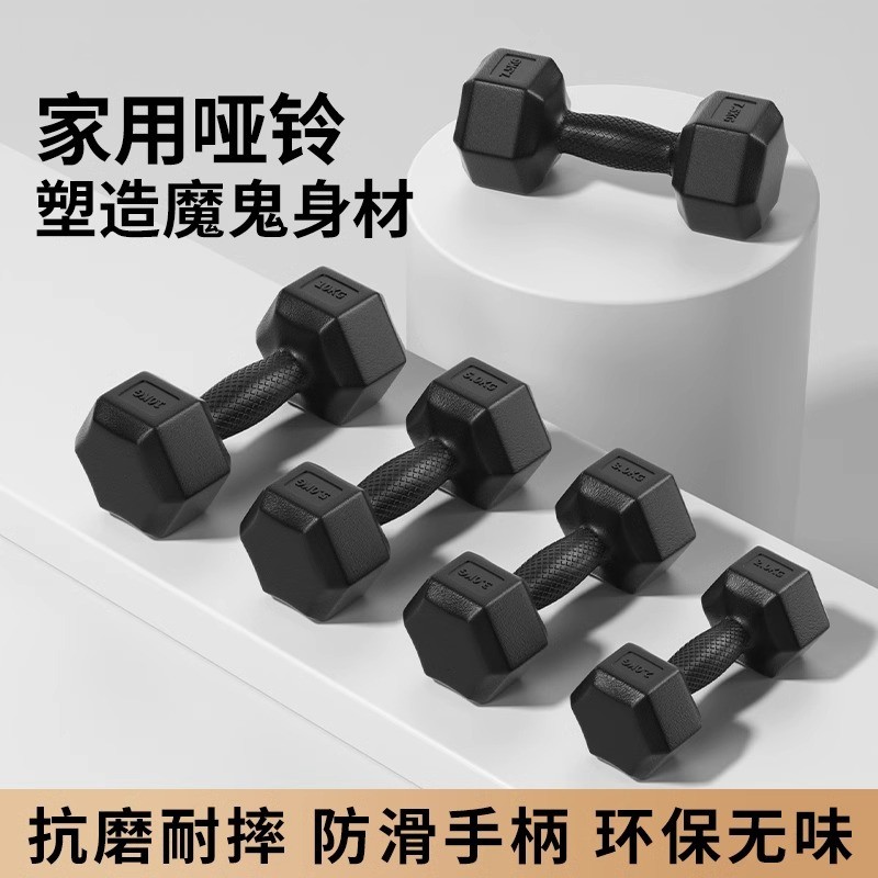 哑铃男士健身家用健身包胶10kg一对学生宿舍女生力量训练六角哑铃
