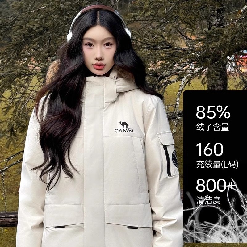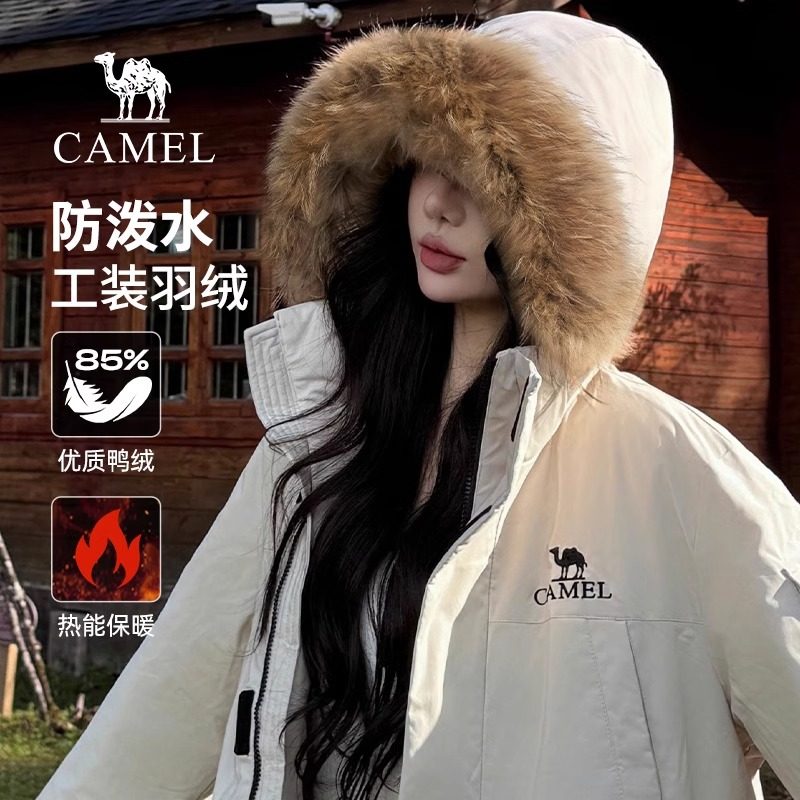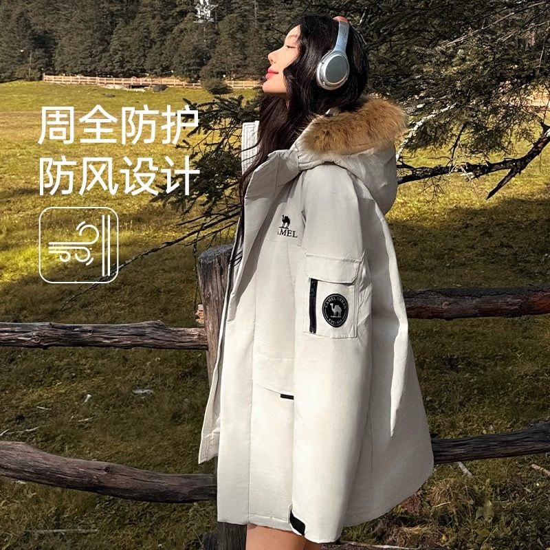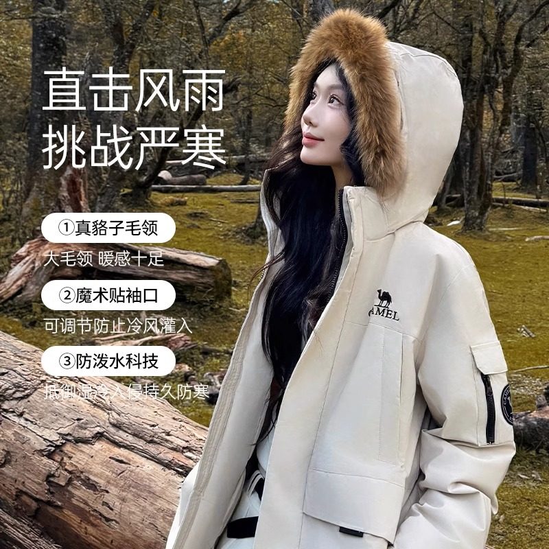 骆驼大毛领羽绒服女2025冬季新款加厚保暖防寒防风派克服工装外套