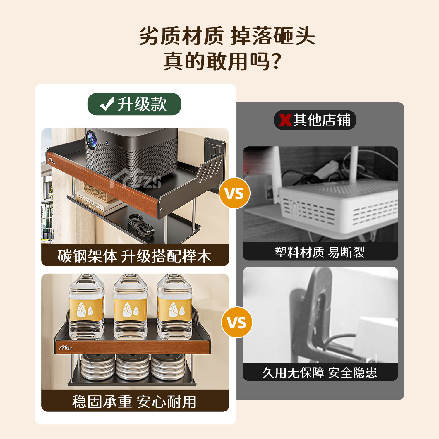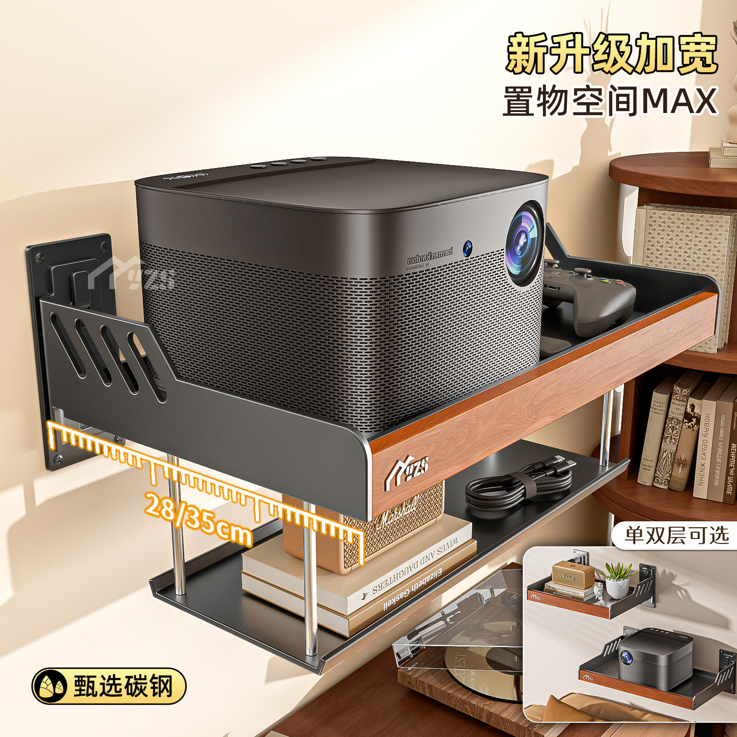 实木投影仪支架免打孔家用壁挂床头置物架适用天猫魔屏小米极米爱普生坚果专用放置台沙发后多功能实木托盘