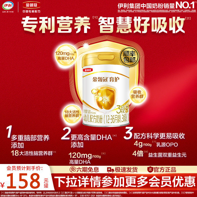 新国标伊利金领冠育护3段(1-3岁适用)900g幼儿配方牛奶粉旗舰店