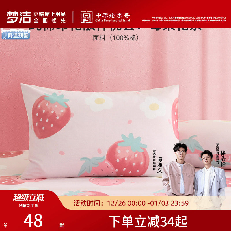 梦洁家纺枕套一对装全棉纯棉成人儿童枕头套春秋枕芯内胆套50*70
