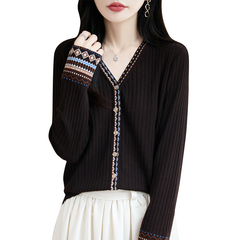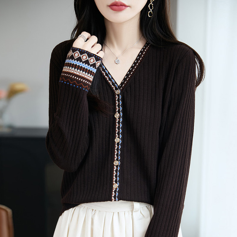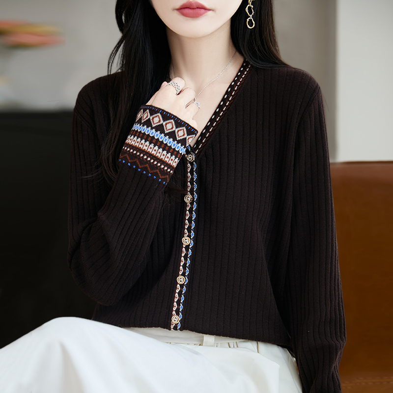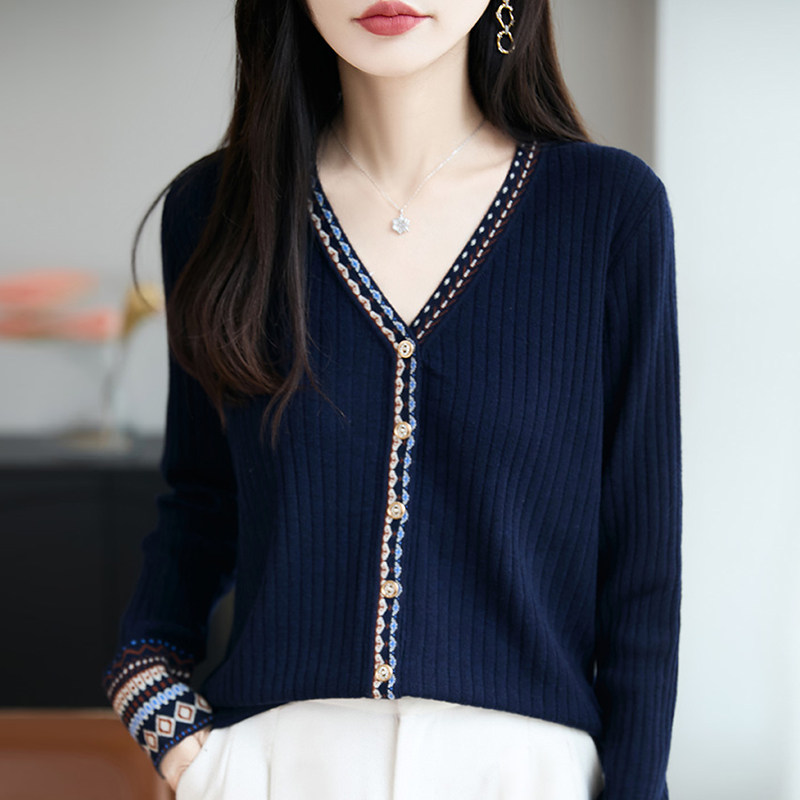 新款羊毛开衫外套女针织打底衫V领2025年春季羊绒外搭短款毛衣女