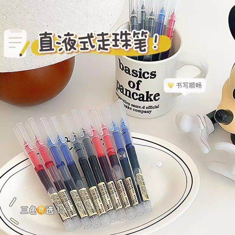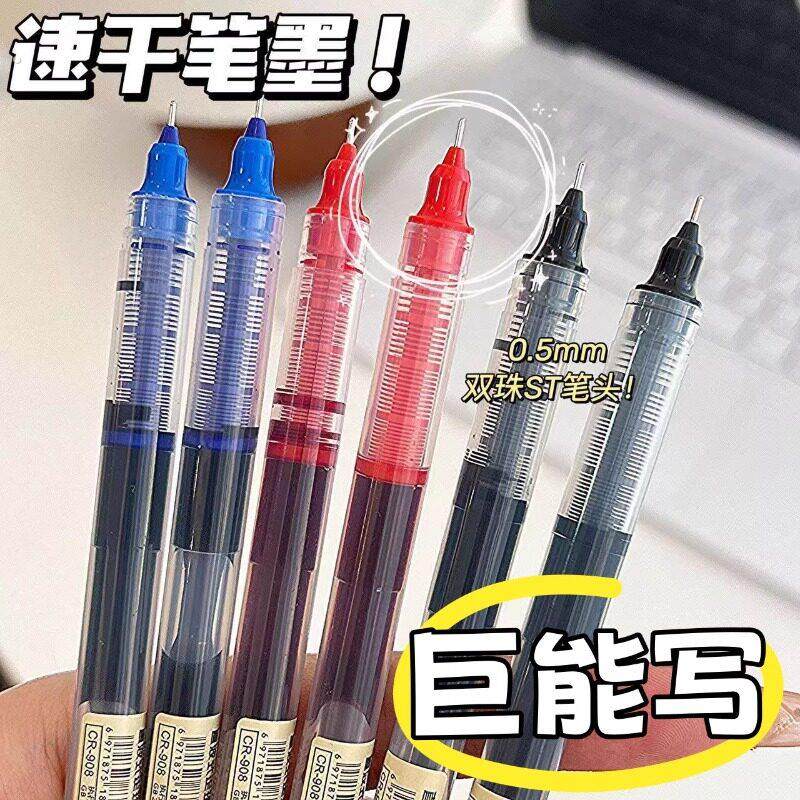 【3支装】直液式水性圆珠笔中性直液式黑色0.5大容量学生速干 干