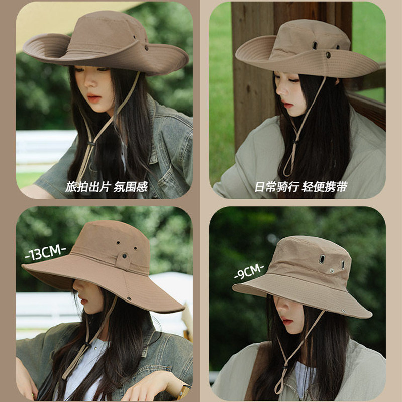 西部牛仔登山帽渔夫帽爬山徒步防晒帽女户外太阳男遮阳大帽檐帽子