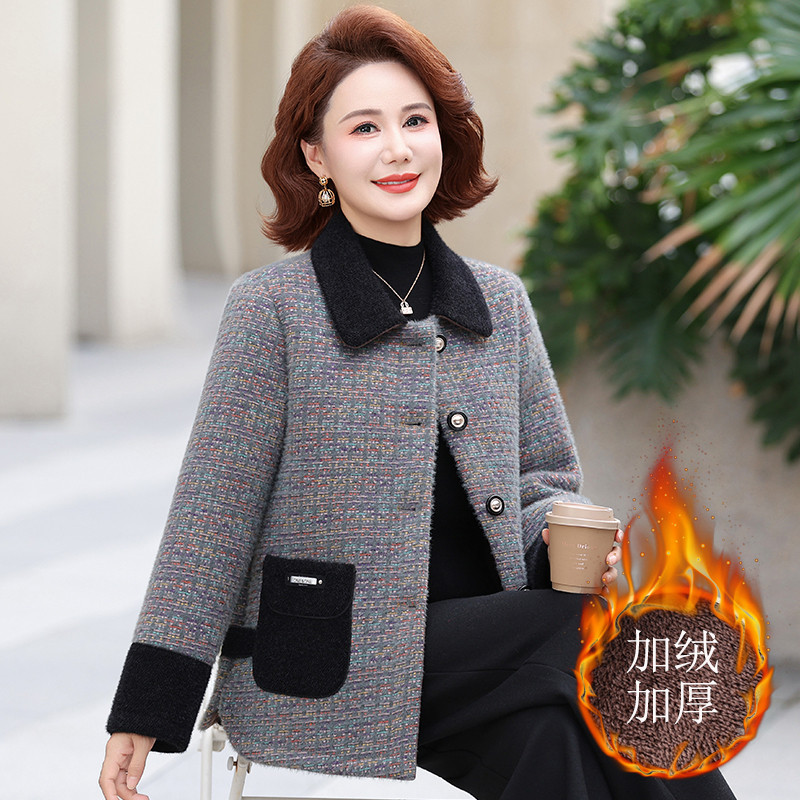 妈妈冬装加绒加厚水貂绒外套2025新款中老年女装洋气呢子大衣短款
