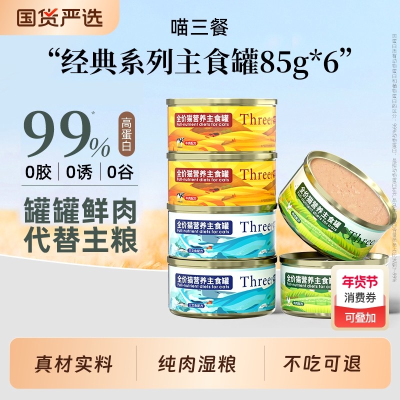 喵三餐猫罐头主食幼猫成猫湿粮猫咪零食营养猫粮三文鱼全价鸡肉