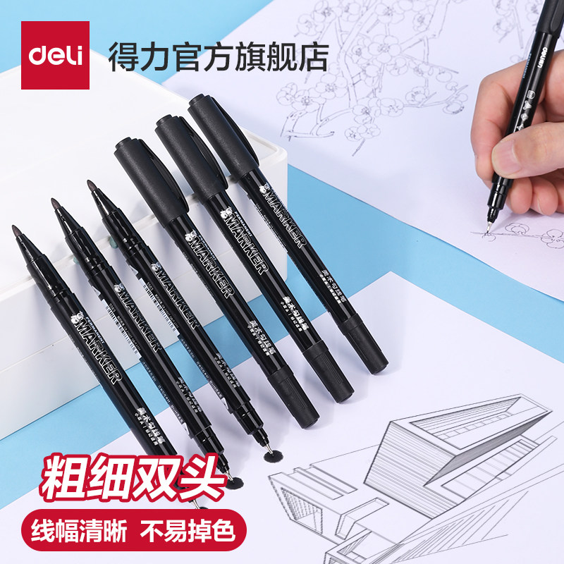 【12支Deli\/得】得力勾线笔双头美术用勾边笔描装线绘画高光笔双