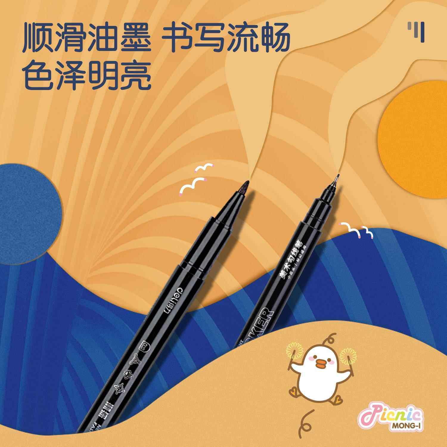 粗细双头勾线笔黑色油性画画防水记号笔美术专用描边笔小学生儿童画笔幼儿园勾边笔油性笔大头笔油笔油漆笔