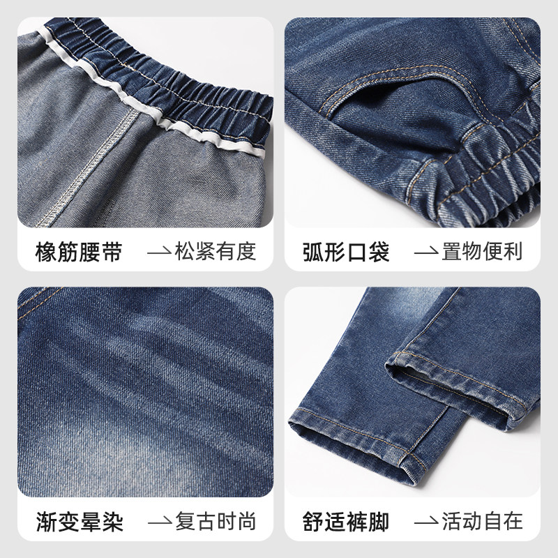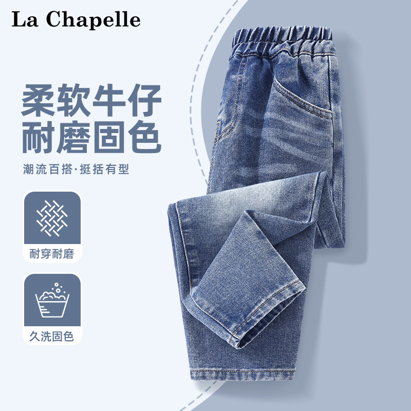 拉夏贝尔男童春秋牛仔裤2025新款儿童时髦帅气薄长裤女童百搭裤子