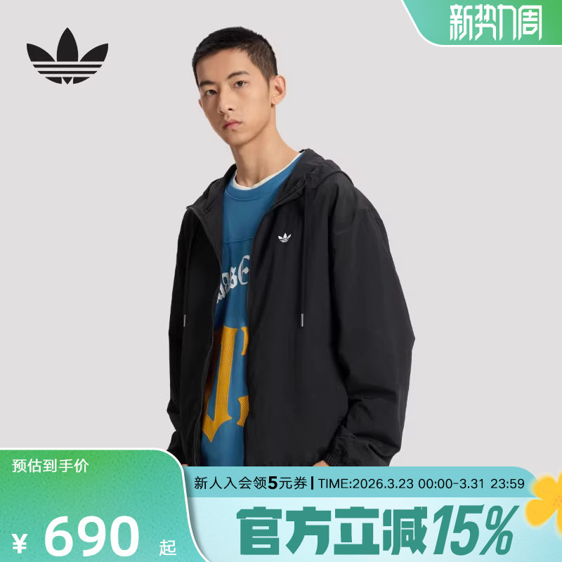 adidas阿迪达斯三叶草连帽休闲运动夹克外套2026夏男防风服KT3035