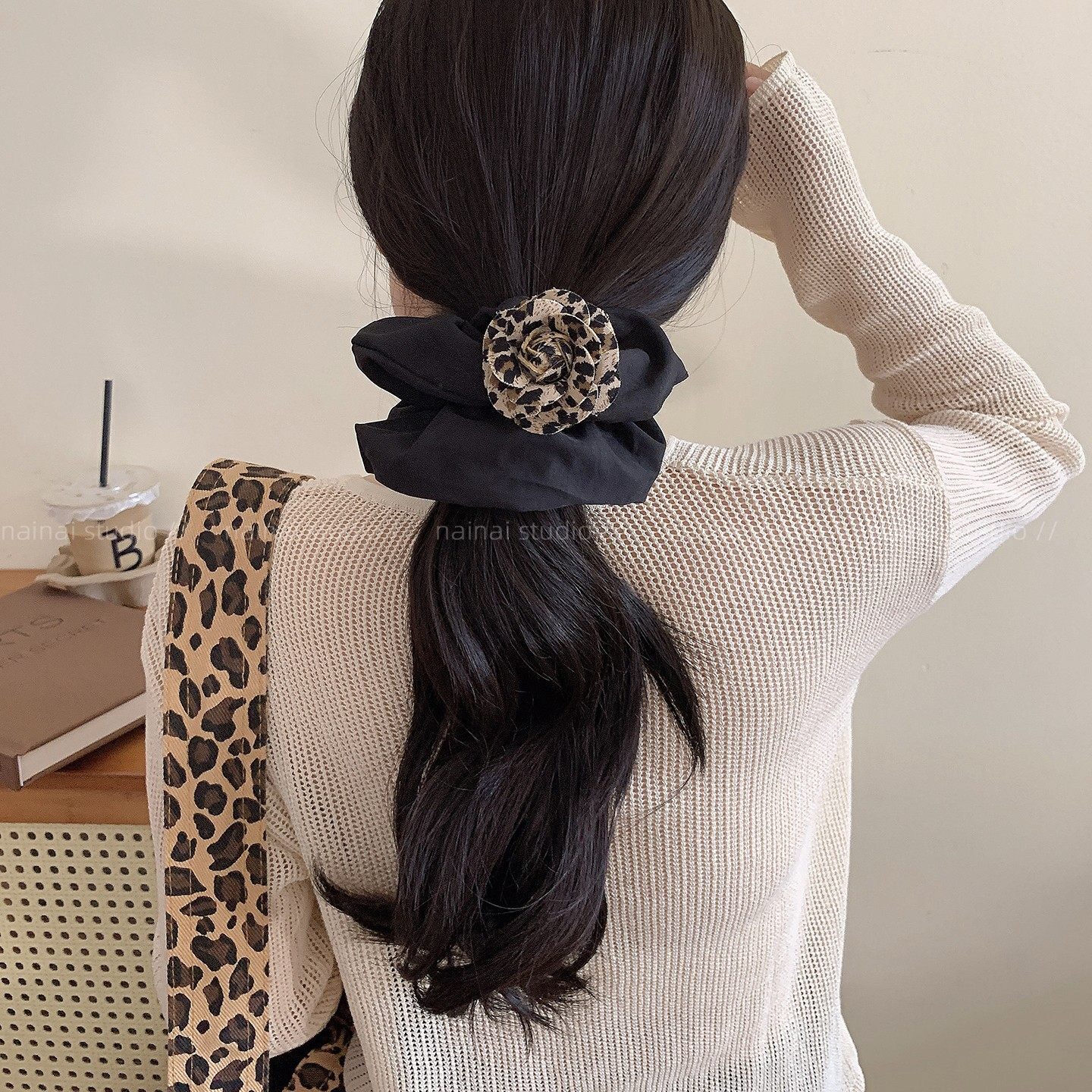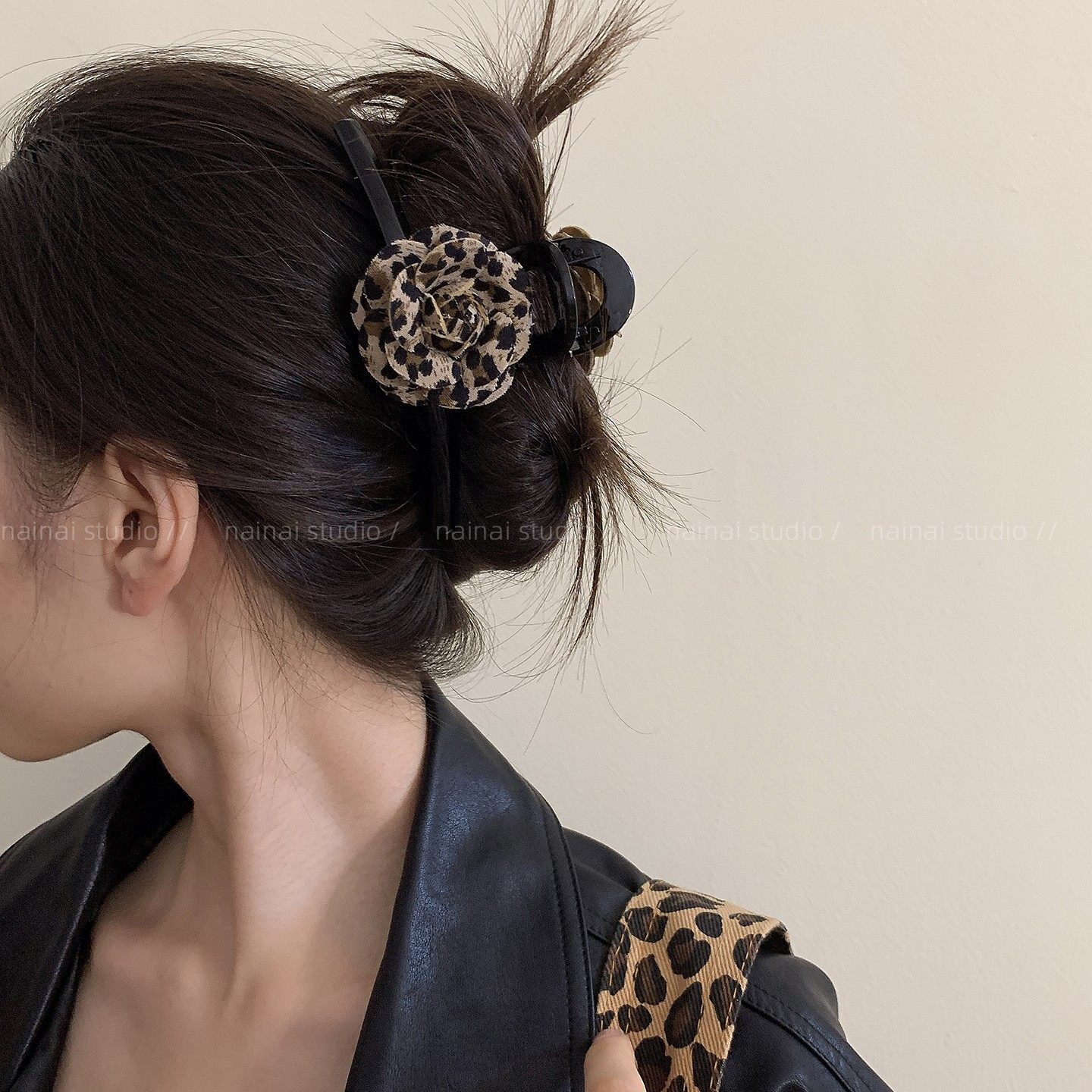 豹纹山茶花发夹~原创系列!黑色甜酷抓夹发圈蝴蝶结发绳发饰头饰