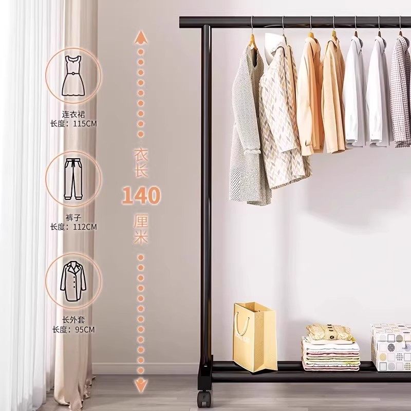 晾衣架落地家用可移动卧室美容院挂衣服架子室内阳台简易杆衣帽架