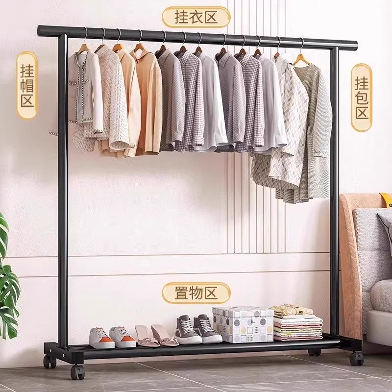 衣架卧室落地家用衣帽架铁艺晾晒衣架子高级室内立式可移动挂衣架