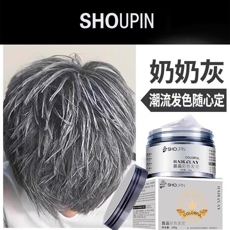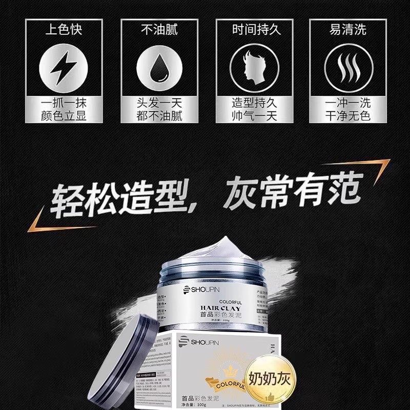 奶奶灰发蜡一次性染色发泥男士定型魅力紫火红色造型染发膏造型