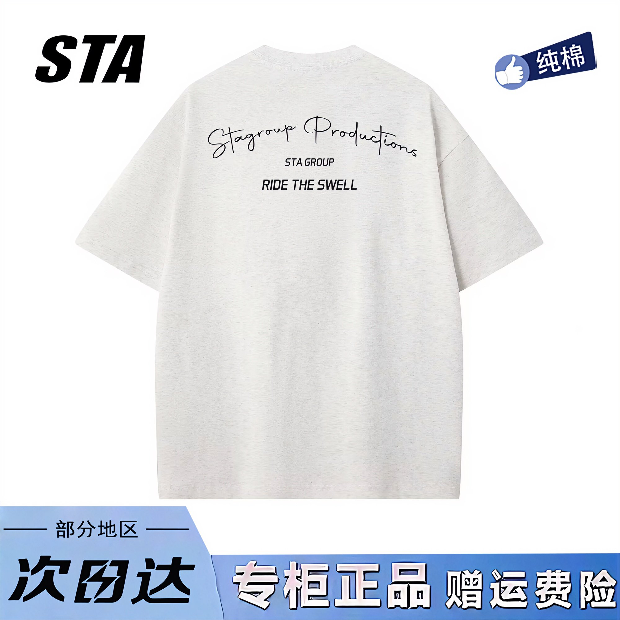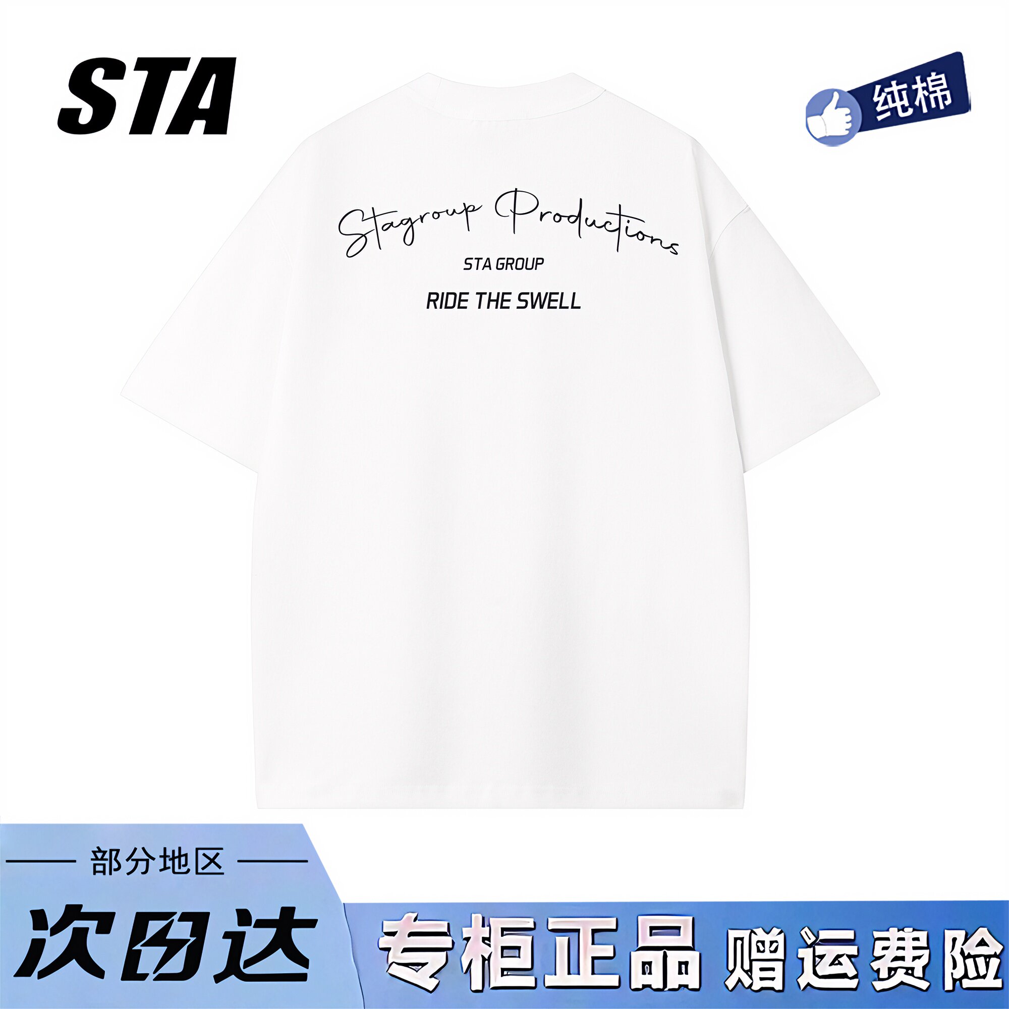 STA旗舰店基础款男女短袖美式潮牌重磅纯棉情侣宽松圆领印花T恤