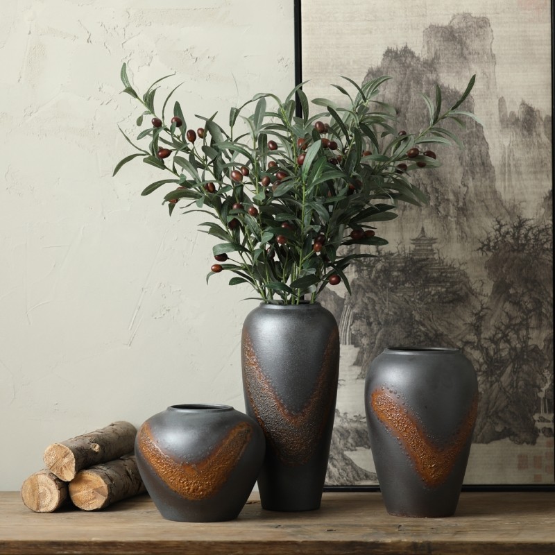 景德镇高级感新中式陶瓷花瓶做旧风花器客厅玄关台面软装饰品摆件