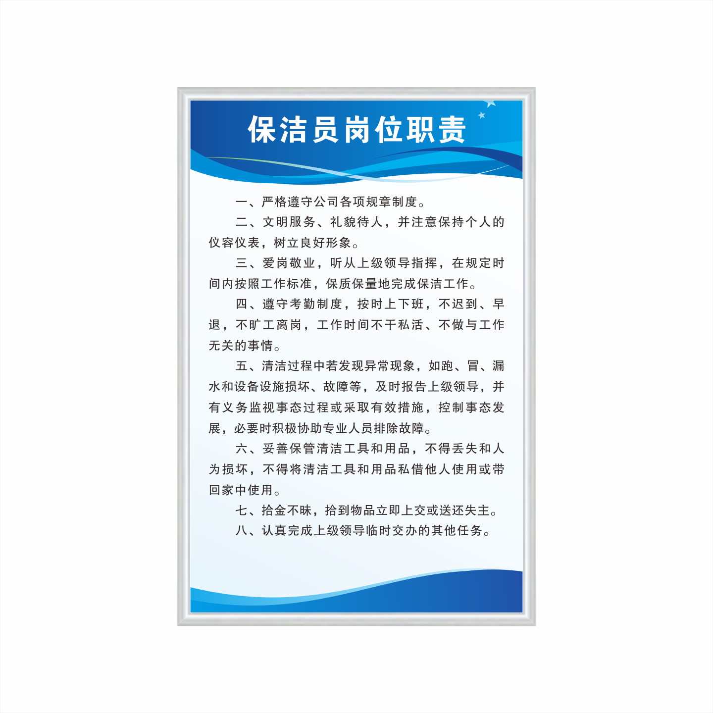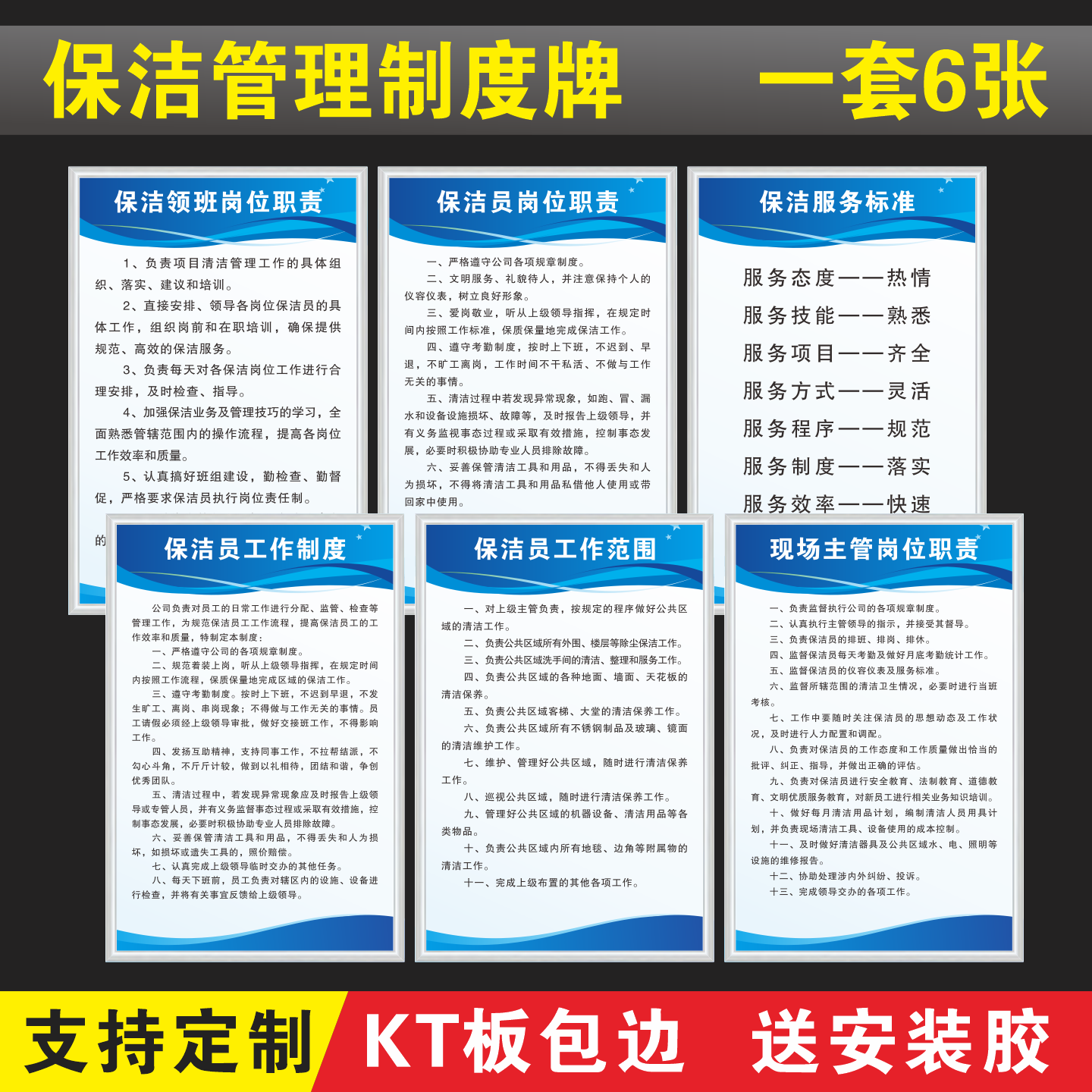 保洁管理制度保洁公司领班保洁员主管工作岗位职责保洁服务标准工作范围制度牌