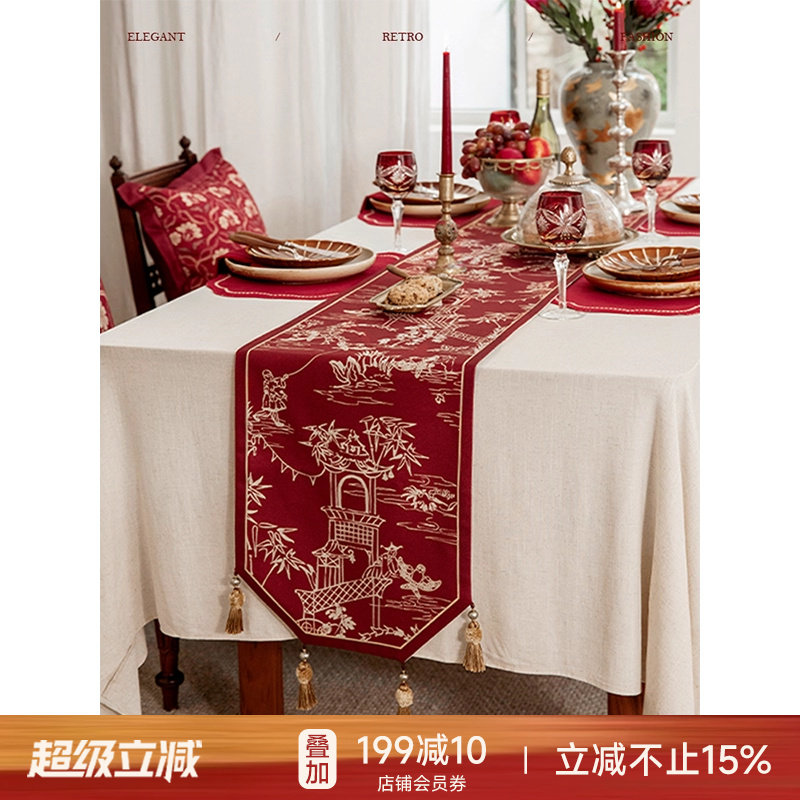 【第3件0元专区】蜡笔派岁乐如鸢桌旗中式复古高级氛围餐桌盖布