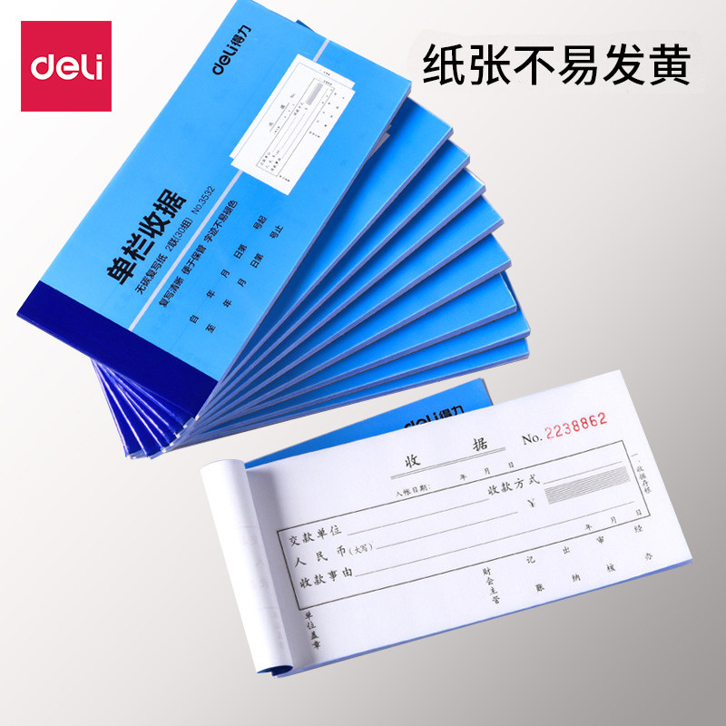 得力收据本单栏多栏二联三联簿账簿收款本财务用品餐饮收据条单据